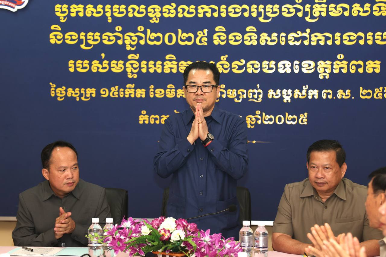 ខេត្តកំពត៖ លោកបណ្ឌិត ជ្រុន ថេរ៉ាវ៉ាត ទីប្រឹក្សាផ្ទាល់សម្ដេចមហាបវរធិបតី ហ៊ុន ម៉ាណែត នាយករដ្ឋមន្ត្រី នៃព្រះរាជាណាចក្រកម្ពុជា និងជារដ្ឋលេខាធិការក្រសួងអភិវឌ្ឍន៍ជនបទ និងលោកបណ្ឌិត លឹម អុីវ អនុរដ្ឋលេខាធិការ,លោក សេង សិរីបុត្រ អភិបាលរងខេត្តកំពត នៅព្រឹកថ្ងៃសុក្រ ១៥កើត ខែមិគសិរ ឆ្នាំម្សាញ់ សប្តស័ក ពុទ្ធសករាជ ២៥៦៩ ត្រូវនឹងថ្ងៃទី៥ ខែធ្នូ ឆ្នាំ២០២៥ បានអញ្ជើញដឹកនាំកិច្ចប្រជុំបូកសរុបលទ្ធផលការងារប្រចាំត្រីមាសទី៤ និងប្រចាំឆ្នាំ២០២៥ និងទិសដៅបន្តឆ្នាំ២០២៦ របស់មន្ទីរអភិវឌ្ឍន៍ជនបទខេត្តកំពត ដោយមានការចូលរួមពី លោកប្រធានមន្ទីរ,អនុប្រធានមន្ទីរ ,ប្រធាន,អនុប្រធានការិយាល័យ, និងមន្ត្រីជំនាយប្រមាណ ៣៨ រូប។