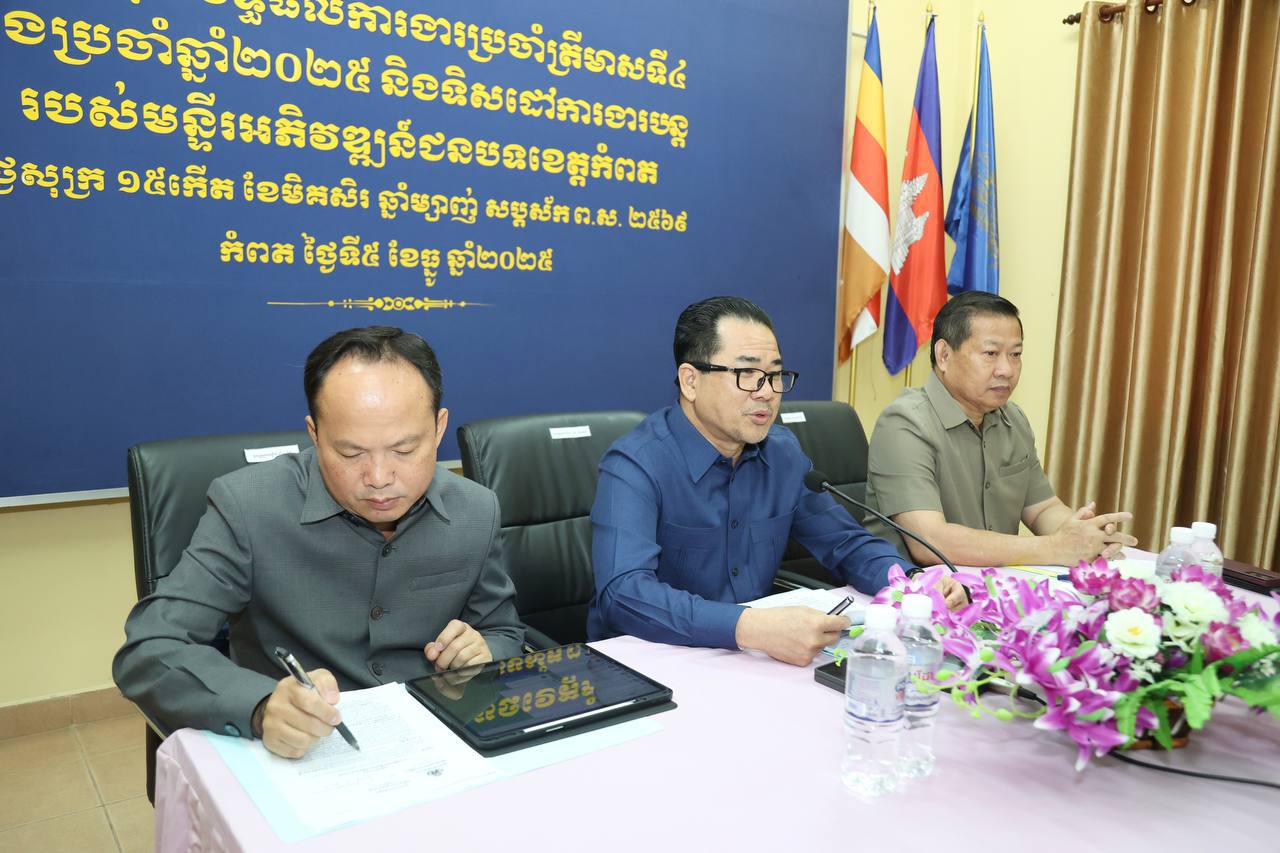 លោកបណ្ឌិត បានលើកឡើងថា៖ក្នុងរយៈពេល ៤ត្រីមាស ឆ្នាំ២០២៥នេះ ថ្នាក់ដឹកនាំ និងមន្ត្រីរាជការនៃមន្ទីរអភិវឌ្ឍន៍ជនបទខេត្តកំពត បានយកចិត្តទុកដាក់ និងខិតខំអនុវត្តនូវរាល់សកម្មភាពការងារដែលបានគ្រោងទុក និងការងារប្រគល់ជូនជាក់ស្តែងការងារ បន្ទាន់ៗមួយចំនួនដែលថ្នាក់ដឹកនាំប្រគល់ជូនមន្ទីរ ក្នុងគោលបំណងសំដៅ ជំរុញចក្ខុវិស័យ “កសាងតំបន់ជនបទកម្ពុជា ប្រកបដោយវិបុលភាព បរិយាបន្ន នវានុវត្តន៍ ឌីជីថល និង ភាពធន់ទាំងផ្នែកសេដ្ឋកិច្ច សង្គម និងវប្បធម៌” ។