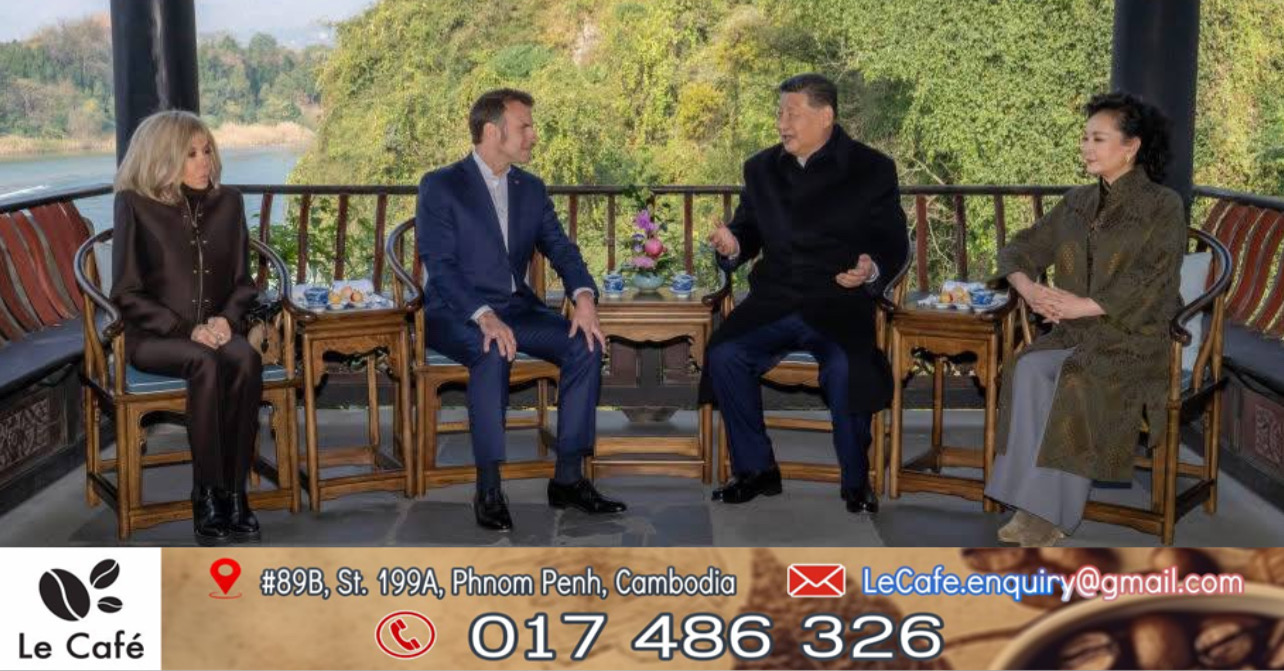 លោកXi Jinpingប្រធានរដ្ឋចិនធ្វើការផ្លាស់ប្តូរជាមិត្តភាពជាមួយលោកEmmanuel Macronប្រធានាធិបតីបារាំងនៅក្រុងChengdu
