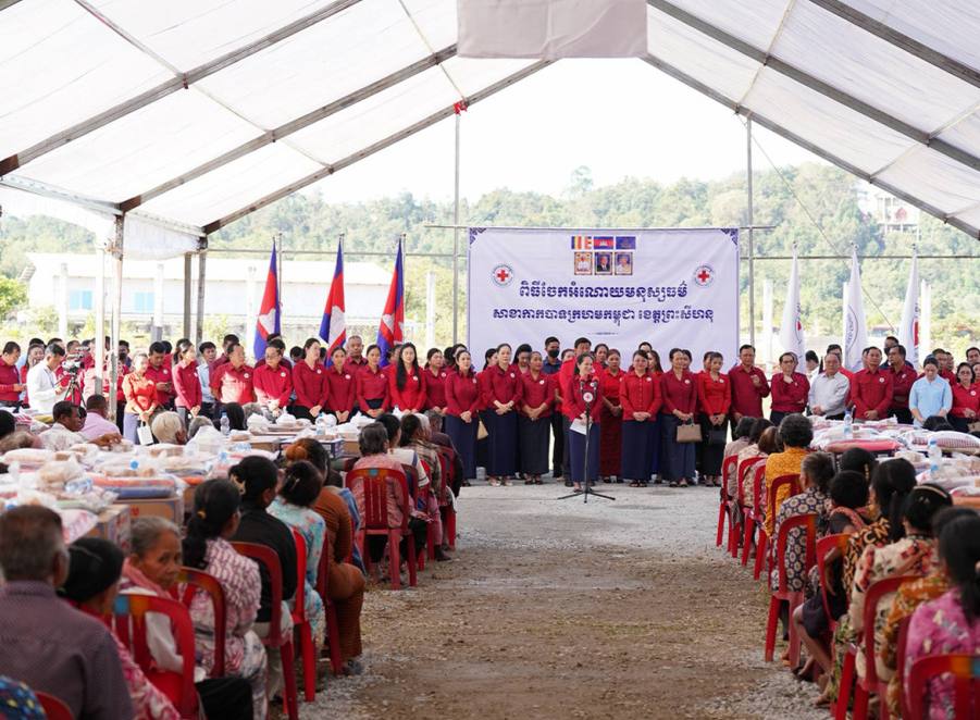 ភ្នំពេញ៖ លោកស្រីបណ្ឌិត ពេជ ចន្ទមុន្នីហ៊ុន ម៉ាណែត អនុប្រធានអចិន្ត្រៃយ៍កាកបាទក្រហមកម្ពុជា តំណាងដ៏ខ្ពង់ខ្ពស់សម្តេចកិត្តិព្រឹទ្ធបណ្ឌិត ប៊ុន រ៉ានី ហ៊ុន សែន ប្រធានកាកបាទក្រហមកម្ពុជា បាននាំយកអំណោយស្បុរស់ធម៏ កាកបាទក្រហមចែកជូនប្រជាពលរដ្ឋរង គ្រោះដោយខ្យល់កន្ទ្រាក់ចំនួន២១៩៧គ្រួសារ ក្នុងឃុំចំនួន ៦ក្នុងស្រុកព្រៃនប់ ខេត្តព្រះសីហនុ នៅថ្ងៃទី០៧ ខែធ្នូ ឆ្នាំ២០២៥ ។