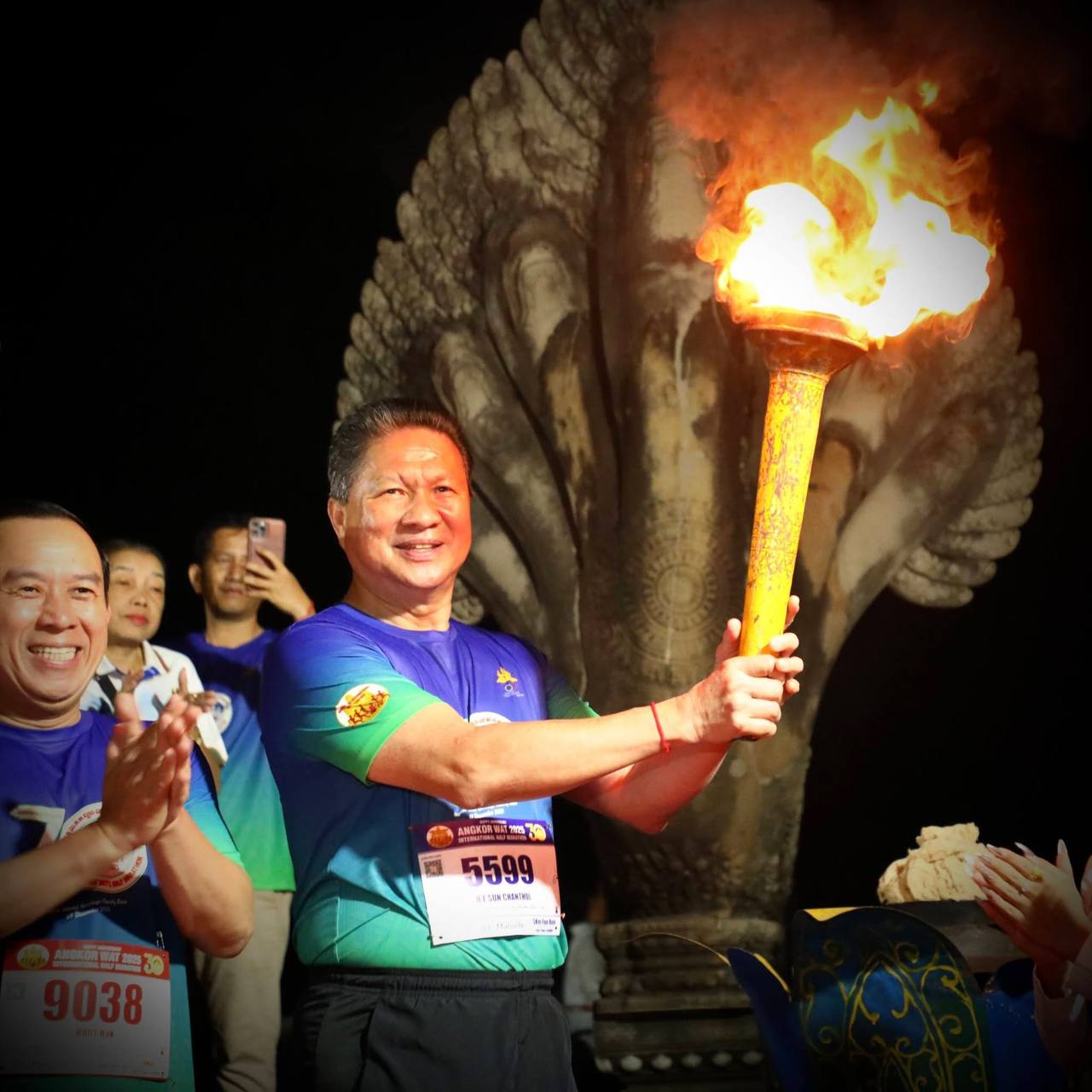 ខេត្តសៀមរាប៖ នាវេលាព្រឹកព្រលឹមស្រាងៗ នៃថ្ងៃអាទិត្យ ទី៧ ខែធ្នូ ឆ្នាំ២០២៥ លោក ស៊ុន ចាន់ថុល ឧបនាយករដ្ឋមន្ត្រី អនុប្រធានទី១ ក្រុមប្រឹក្សាអភិវឌ្ឍន៍កម្ពុជា តំណាងដ៏ខ្ពង់ខ្ពស់ សម្តេចមហាបវធិបតី ហ៊ុន ម៉ាណែត នាយករដ្ឋមន្ត្រី នៃព្រះរាជាណាចក្រកម្ពុជា បានអញ្ជើញជាអធិបតីក្នុងពិធីបើក ព្រឹត្តិការណ៍រត់ប្រណាំងពាក់កណ្តាលម៉ារ៉ាតុងអន្តរជាតិអង្គរវត្ត ខួបលើកទី៣០ ឆ្នាំ២០២៥ ដែលបានប្រារព្ធឡើងបរិវេណមុខប្រាសាទអង្គរវត្ត ក្នុងទឹកដីនៃខេត្តសៀមរាប។