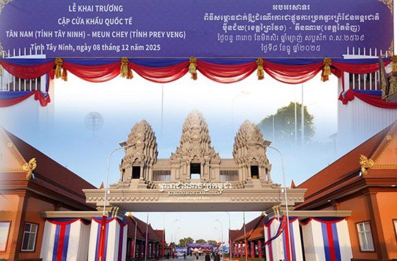 ខេត្តព្រៃវែង ៖ នៅព្រឹកថ្ងៃចន្ទ ៣រោច ខែមិគសិរ ឆ្នាំម្សាញ់ ព.ស.២៥៦៩ ត្រូវនឹងថ្ងៃទី៨ ខែធ្នូ ឆ្នាំ២០២៥នេះ សម្តេចមហាបវរធិបតី ហ៊ុន ម៉ាណែត នាយករដ្ឋមន្ត្រីកម្ពុជា និងលោក ផាម មិញជីញ នាយករដ្ឋមន្ត្រីវៀតណាម អញ្ជើញសម្ពោធដាក់ឱ្យដំណើរការជាផ្លូវការនូវច្រកទ្វារអន្តរជាតិម៉ឺនជ័យ-តឹនណាម។