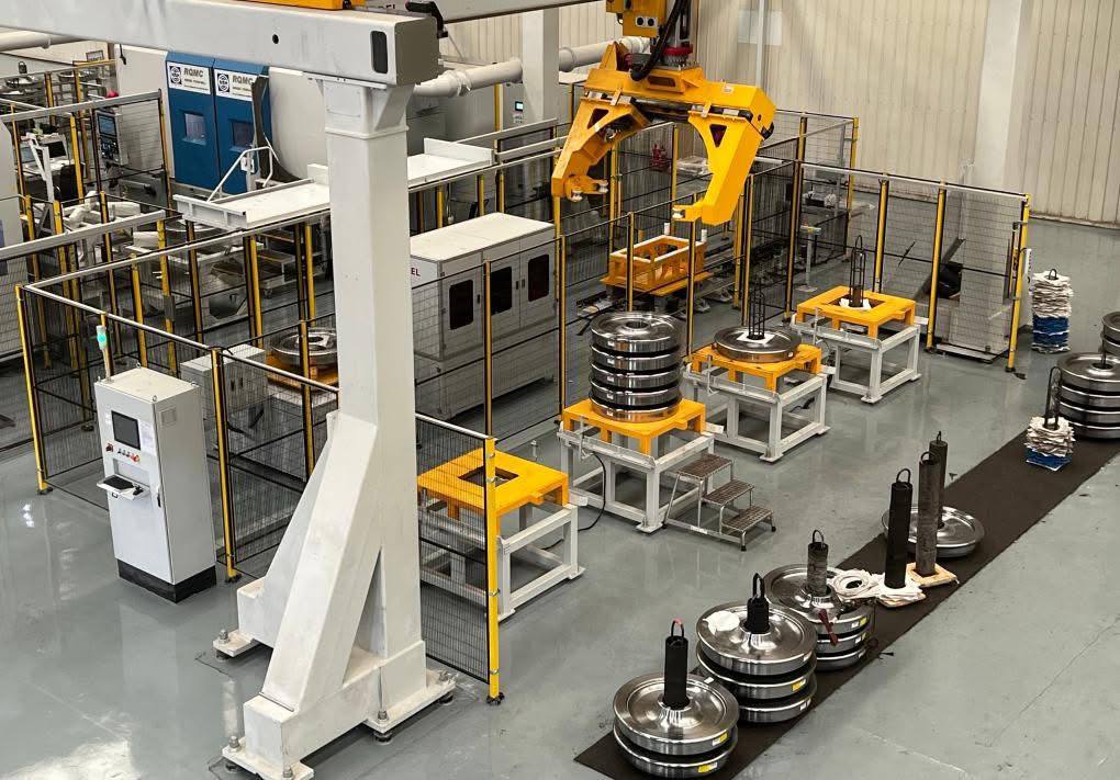 នៅលើខ្សែសង្វាក់ផលិតកម្មស្វ័យប្រវត្តិទាំងស្រុង ក្រុមដៃរ៉ូបូតដែលអាចបត់បែនបានមួយក្រុមដំណើរការយ៉ាងរលូន និងទៀងទាត់ក្នុងការចាប់យក ដឹកជញ្ជូន កែច្នៃ និងរមៀលបន្ទះដែកក្តៅក្រហម។ ក្នុងរយៈពេលតិចជាងមួយនាទី កង់រថភ្លើង “Fuxing” ដែលមានទម្ងន់ជាង ៥០០ គីឡូក្រាមត្រូវបានផលិតដោយជោគជ័យ។
