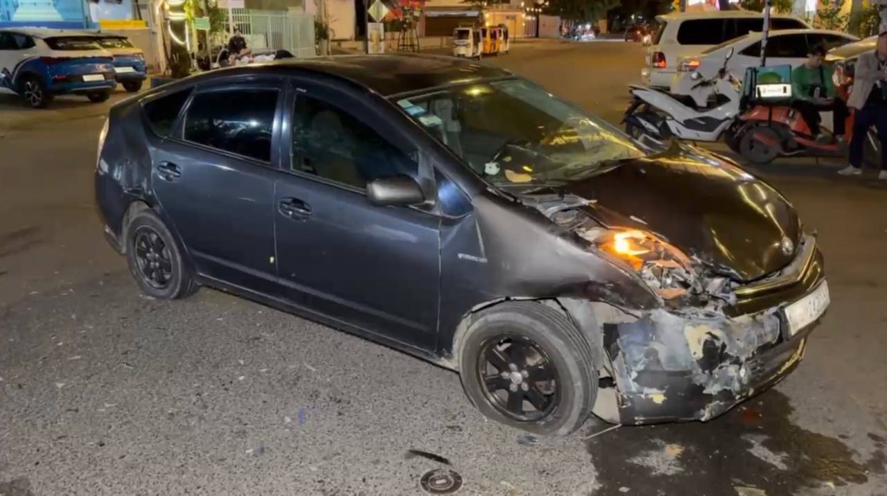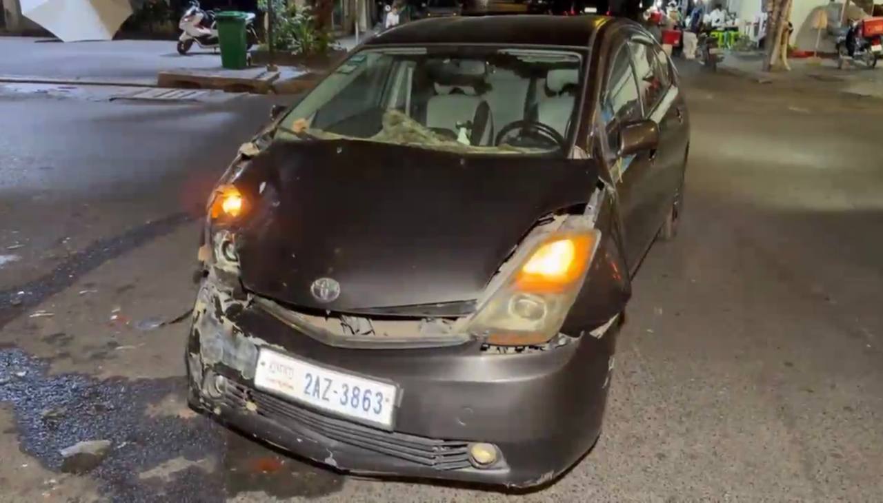 ចំណែករថយន្តតូយ៉ូតាព្រុស ពណ៌ខ្មៅ រងការខូចខាតផ្នែកខាងមុខចំហៀងខាងឆ្វេង ហើយអ្នកបេីកបរចុះគេចទៅបាត់ដោយមិនមានដំណោះស្រាយនោះទេ ។