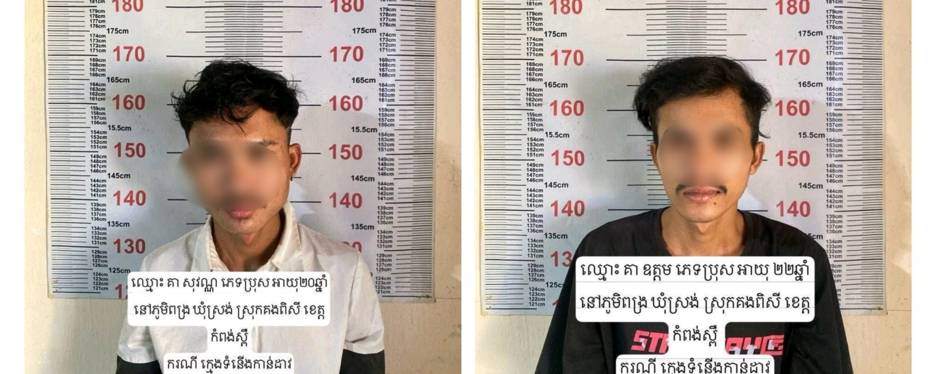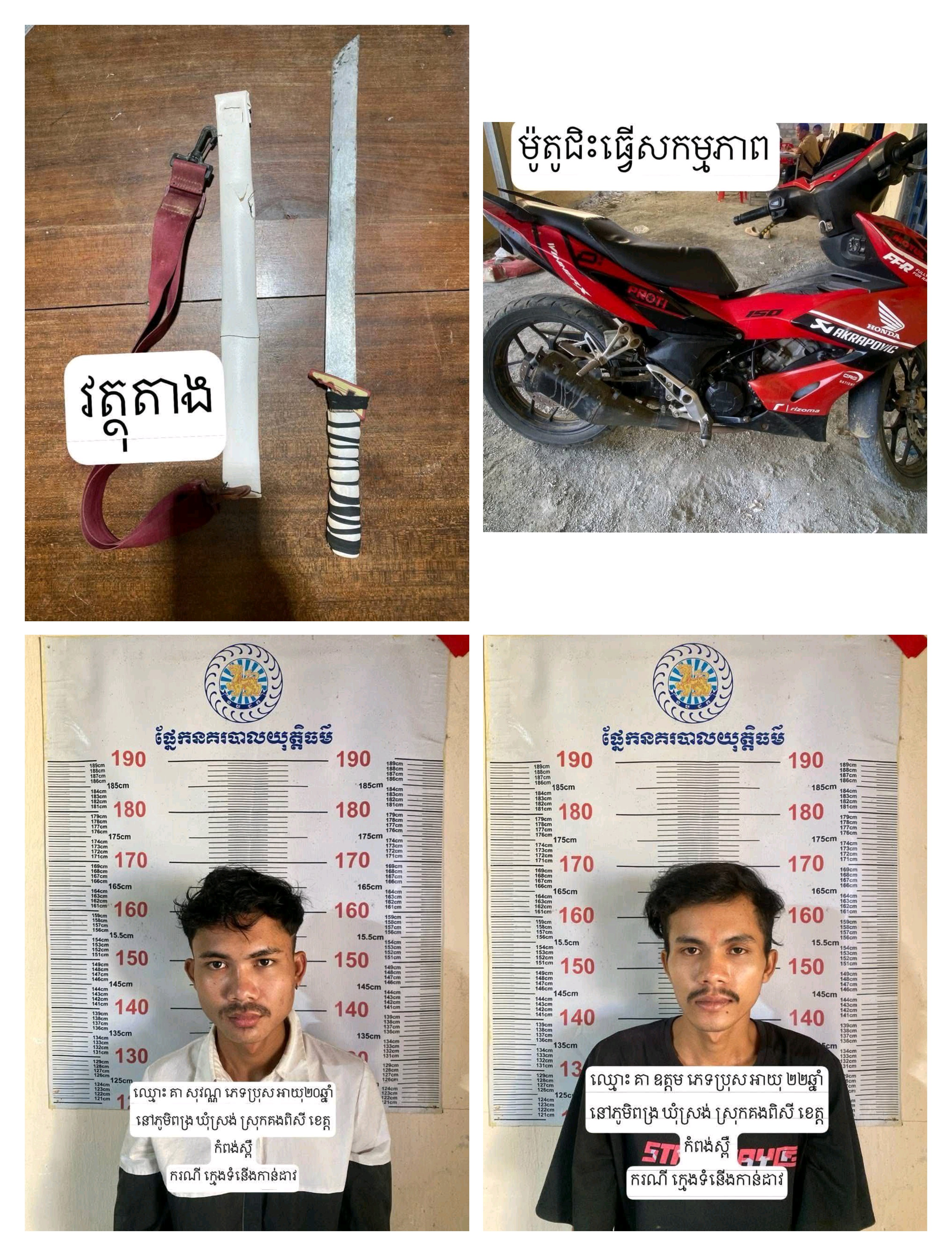 ប្រភពខាងលើឲ្យដឹងថា នៅថ្ងៃទី១៣ ខែធ្នូ ឆ្នាំ ២០២៥ វេលាម៉ោង២២និង៥០នាទី កម្លាំងប៉ុស្តិ៍នគរបាលរដ្ឋបាលស្រង់ល្បាតនៅក្នុងភូមិសាស្ត្រដល់ចំណុចផ្លូវលំ ភូមិភែក ឃុំស្រង់ ស្រុកគងពិសី ខេត្តកំពង់ស្ពឺ បានឃាត់ខ្លួនជនសង្ស័យចំនួន ០២នាក់ជិះម៉ូតូ ០១គ្រឿងម៉ាក វីនន័រអ៉ិច ព៌ណក្រហមគ្មាន ស្លាកលេខ។