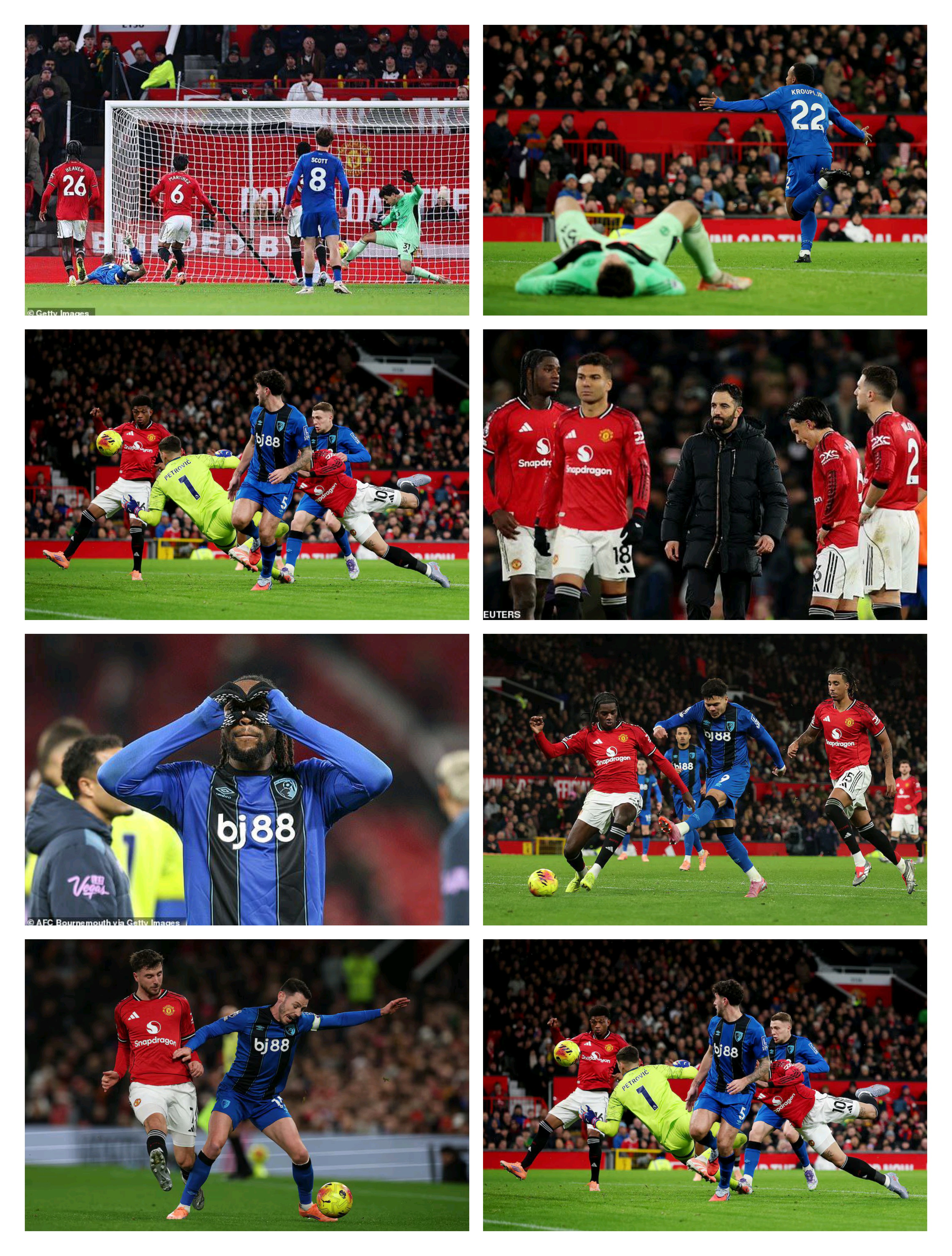United ត្រៀមខ្លួនទទួលជ័យជម្នះបន្ទាប់ពី Bruno Fernandes ស៊ុតទាត់បាល់ហ្វ្រីឃីកដ៏គួរឱ្យភ្ញាក់ផ្អើល ហើយ Matheus Cunha បានស៊ុតបាល់បញ្ចូលទីពីរនាទីដាច់ពីគ្នាក្នុងតង់ទីពីរដើម្បីធ្វើឱ្យពួកគេនាំមុខ 4-3 ។ប៉ុន្តែកីឡាករបម្រុង Kroupi វ័យ 19 ឆ្នាំរបស់ Bournemouth បានបំបិទមាត់អ្នកគាំទ្ររបស់ United ត្រឹមតែ 5 នាទីក្រោយមកដោយស៊ុតបញ្ចូលទីតាមស្មើវិញ។