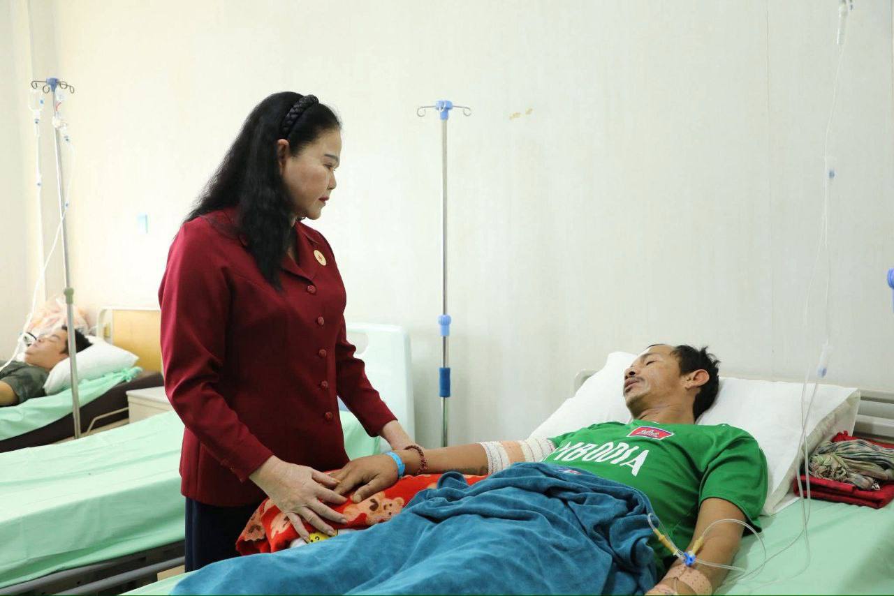 ស្ថិតក្នុងក្តីដ៏ក្តុកក្តួលនេះ សម្តេចកិត្តិព្រឹទ្ធបណ្ឌិត ប៊ុន រ៉ានី ហ៊ុនសែន បាននាំនូវព្រះរាជបណ្តាំផ្តាំផ្ញើសួរសុខទុក្ខ ក្តីអាណិតអាសូរពីសំណាក់ សម្តេចព្រះមហាក្សត្រី ព្រះវររាជមាតាជាតិខ្មែរ ជាទីគោរពសក្ការៈដ៏ខ្ពង់ខ្ពស់បំផុត ជាពិសេសការកោតសរសើរ ស្ញប់ស្ញែងចំពោះទឹកចិត្តដ៏អង់អាចក្លាហាន ហ៊ានពលិកម្មគ្រប់បែបយ៉ាងដើម្បីបូរណភាពទឹកដីដ៏កម្សត់របស់យើង និងសូមជូនពរដល់វីរយុទ្ធជនគ្រប់រូប សូមឆាប់បានជាសះស្បើយឡើងវិញ។