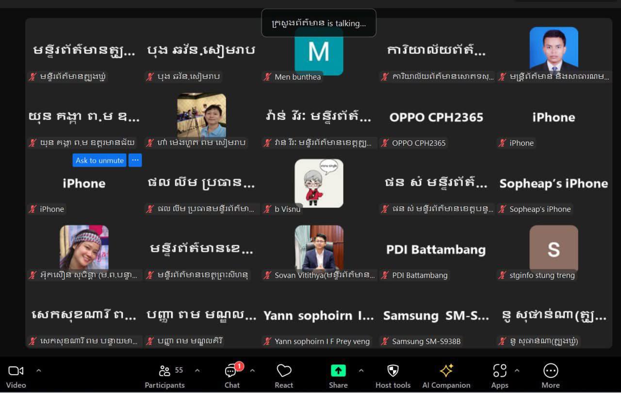 អ្នកនាំពាក្យក្រសួងព័ត៌មានបានមានប្រសាសន៍បែបនេះក្នុងឱកាស ឯកឧត្តមបានដឹកនាំកិច្ចប្រជុំត្រួតពិនិត្យវឌ្ឍនភាពការងារព័ត៌មាននិងសាធារណមតិរបស់មន្ទីរព័ត៌មានរាជធានីខេត្ត កាលថ្ងៃទី១៦ ខែធ្នូ ឆ្នាំ២០២៥ នៅទីស្តីការក្រសួងព័ត៌មាន និងតាមរយៈវីដេអូពីចម្ងាយ ដោយឯកឧត្តមបានរំលេចអំពីសារៈសំខាន់នៃតួនាទី និងការអនុវត្តវិធានការរបស់ក្រសួងនិងមន្ទីរព័ត៌មានរាជធានីខេត្តក្នុងការរក្សាស្ថិរភាព និងបរិយាកាសសាធារណមតិសុវត្ថិភាពក្នុង និងក្រៅស្រុក ខណៈសមរភូមិសាធារណមតិបានឈានចូលដល់សប្តាហ៍ទី២ ចាប់តាំងពីយោធាថៃបានបើកការវាយប្រហារឈ្លានពានជាថ្មីមកលើកម្ពុជា។