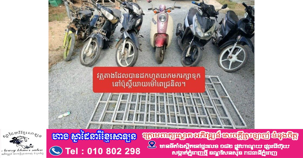 ខេត្តកំពង់ស្ពឺ ៖ ករណីចោរហារយបានកើតឡើងនៅលើផ្លូវល្បឿនលឿន ដោយមានក្រុមចោរបានធ្វើសកម្មភាពលួចអាគុយកាមេរ៉ាសុវត្ថិភាព និងលួចដែកបង្កាន់ដៃផ្លូវល្បឿនលឿន យកទៅលក់បន្តនៅកន្លែងទិញអេតចាយមួយក្នុងស្រុកភ្នំស្រួច ។ ករណីនេះត្រូវបានបកស្បែក ដោយកម្លាំងនគរបាលប៉ុស្តិ៍ឃុំយាយម៉ៅពេជ្រនិល និងនគរបាលស្រុកភ្នំស្រួចព្រមទាំងកំពុងស្រាវជ្រាវរកអ្នកទទួលទិញ ដើម្បីយកមកផ្តន្ទាទោសតាមផ្លូវច្បាប់ ។
