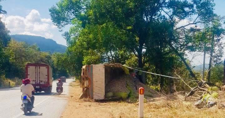 ហើយក្រឡាប់ផ្ទេកខ្លួនតែម្ដង សំណាងហេីយមិនមានបង្កគ្រោះដល់អាយុជីវិតគ្រាន់តែរងរបួសធ្ងន់ប៉ុណ្ណោះ ។