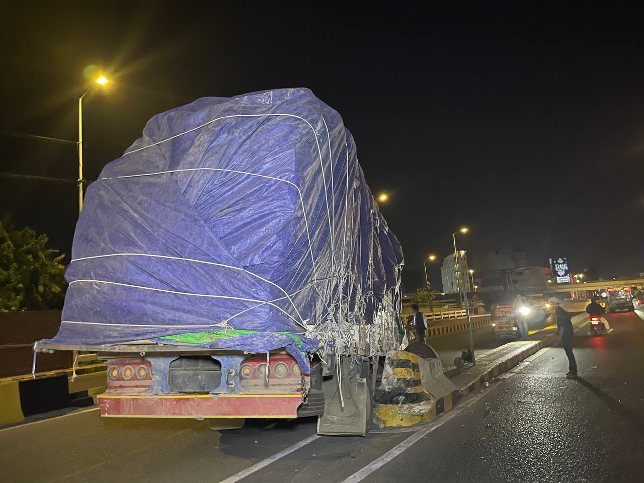ភ្នំពេញ៖ បុរសម្នាក់បានបើករថយន្តកូរ៉េដឹកទំនិញមួយគ្រឿងក្នុងល្បឿនលឿនខ្វះការប្រុងប្រយ័ត្នក៏រ៉េចង្កូតទៅបុករបាំងថ្មគល់ស្ពានអាកាស្ទឹងមានជ័យយ៉ាងពេញទំហឹងបណ្ដាលឲ្យរថយន្តដាច់កង់ម្ខាងទៅមុខលែងរួចខូចខាតយ៉ាងដំណំ សំណាងល្អមិនបង្កឲ្យមានគ្រោះថ្នាក់ដល់មនុស្ស។