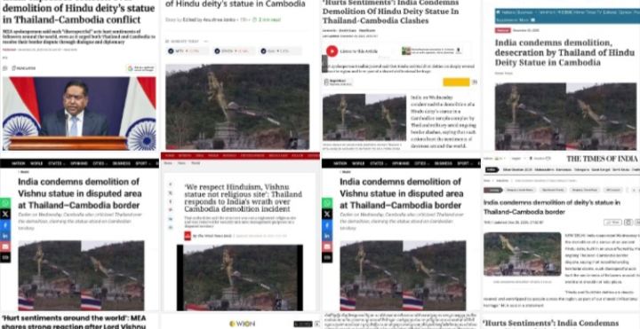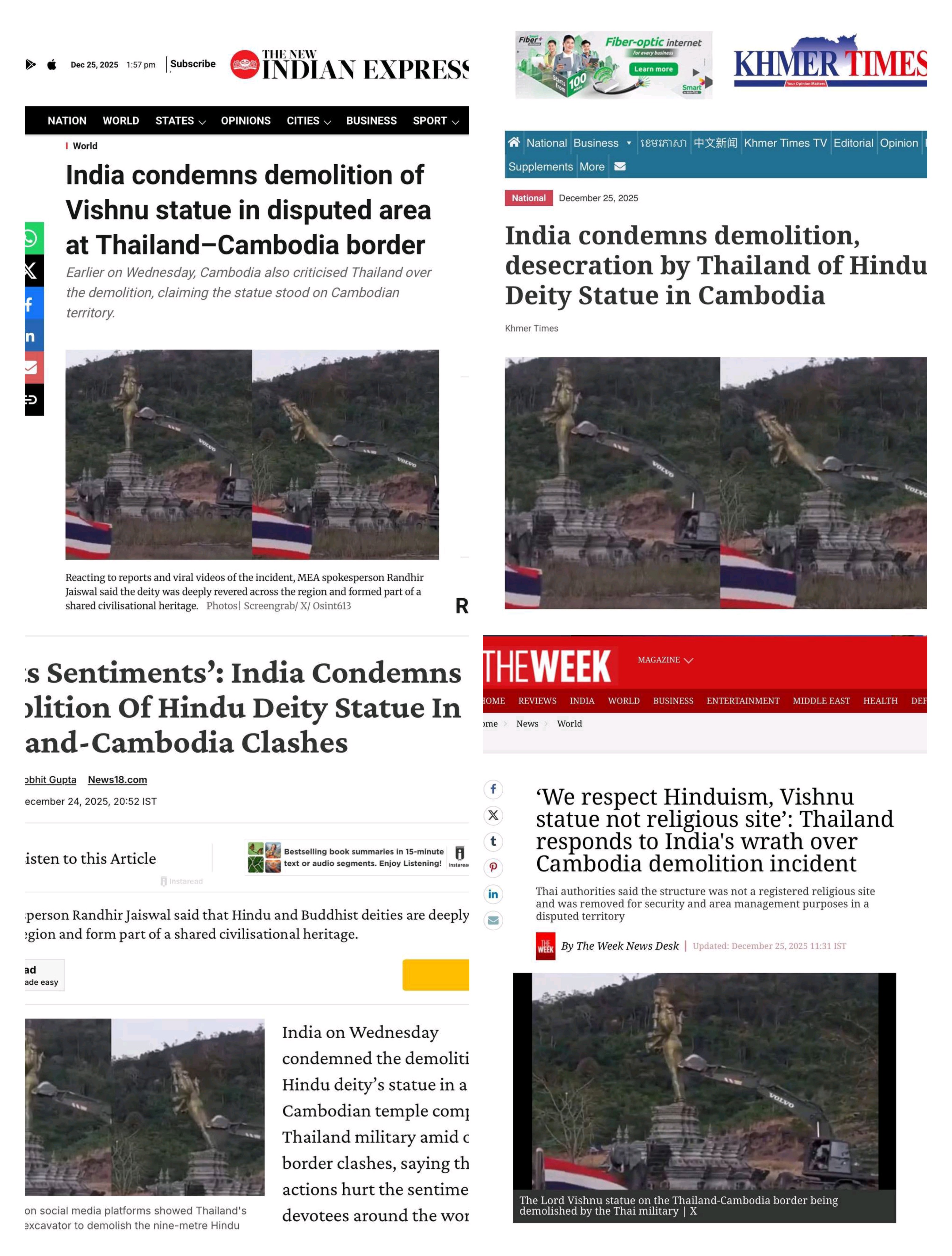 រដ្ឋមន្ត្រីក្រសួងព័ត៌មាន​៖​ សារព័ត៌មាននៅក្នុងប្រទេសឥណ្ឌា បានផ្សព្វផ្សាយពីរូបភាពដែលយោធាថៃ ឈ្លានពានលើទឹកដីកម្ពុជា និងបំផ្លាញរូបសំណាកព្រះវិស្ណុ ដែលសាងសង់នៅលើទឹកដីកម្ពុជា សម្រាប់ការគោរពបូជា