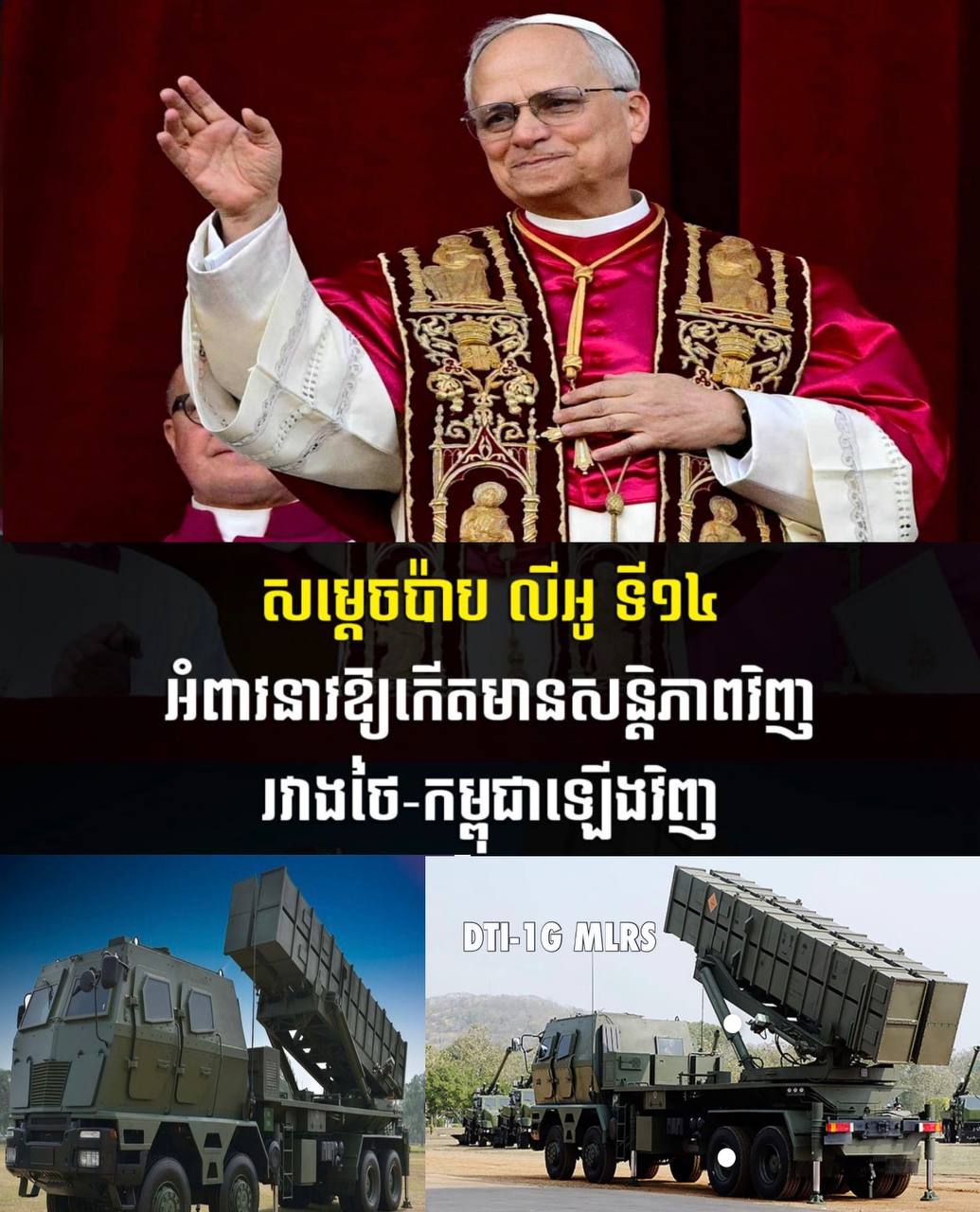 វ៉ាទីកង់៖ សម្តេចប៉ាប លីអូ ទី១៤ បានអំពាវនាវឱ្យមានការស្តារឡើងវិញនូវមិត្តភាពបុរាណរវាងកម្ពុជា និងថៃឡើងវិញម្តងទៀតបន្ទាប់ពីប្រទេសទាំងពីបានចាប់ផ្តើមធ្វើសង្រ្គាមជាមួយគ្នាម្តងទៀតលើកទី២អស់រយៈពេលជាង២សប្តាហ៍ចាប់តាំងពីថ្ងៃទី ៧ ធ្នូ ដែលថៃបានបើកការឈ្លានពានលើប្រទេសកម្ពុជា។ ការអំពាវនាវរបស់សម្តេចប៉ាបនេះធ្វើឡើងនៅក្នុងសារបុណ្យណូអែលរបស់ព្រះអង្គ និងពរជ័យ របស់ទ្រង់ថ្លែងទៅកាន់អ្នកគាំទ្រ។