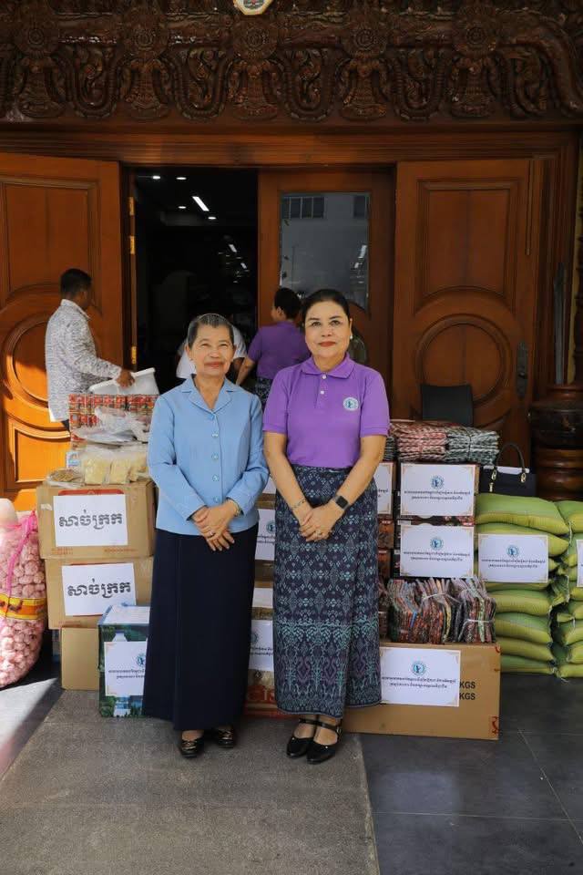 ភ្នំពេញ៖ សម្តេចកិត្តិសង្គហបណ្ឌិត ម៉ែន សំអន ប្រធានគណៈកម្មាធិការកណ្តាល សមាគមនារីកម្ពុជា ដើម្បីសន្តិភាព និងអភិវឌ្ឍន៍ បានទទួលអំណោយពីសប្បុរសជន ជាស្បៀងអាហារ និងថវិកា របស់សាខាសមាគមនារីកម្ពុជាដើម្បីសន្តិភាព និងអភិវឌ្ឍន៍ក្រសួងការងារ និងបណ្តុះ បណ្តាលវិជ្ជាជីវៈ ដើម្បីចូលរួមចំណែកជួយដល់សមរភូមិជួរមុខ និងជនភៀសសឹក នៅរសៀល ថ្ងៃសុក្រ ៧កើត ខែបុស្ស ឆ្នាំម្សាញ់ សប្តស័ក ព.ស.២៥៦៩ ត្រូវនឹង ថ្ងៃទី២៦ ខែធ្នូ ឆ្នាំ២០២៥ ។