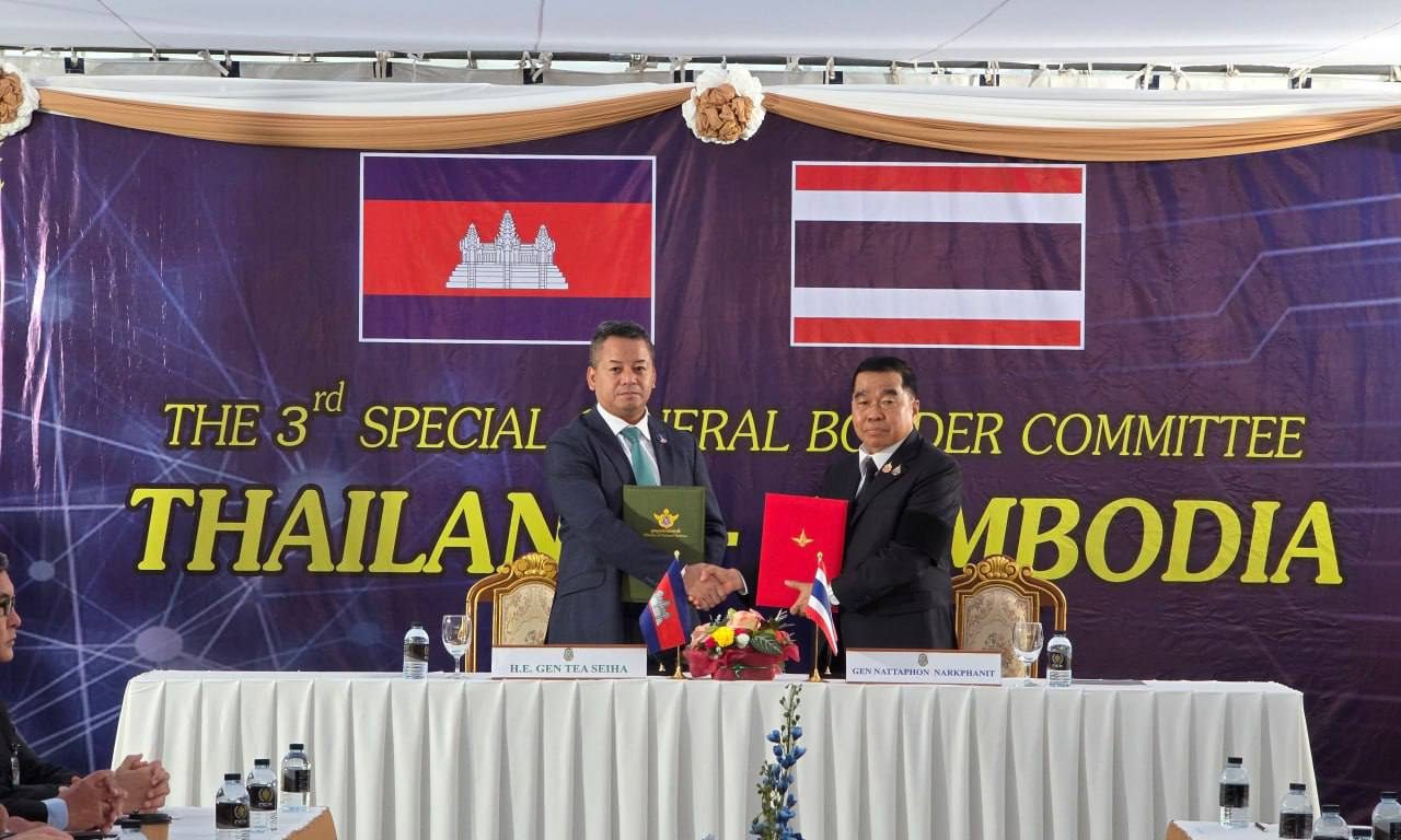 សេចក្តីប្រកាសរួមនៃកិច្ចប្រជុំពិសេសលើកទី៣ នៃគណៈកម្មាធិការព្រំដែនទូទៅ (GBC) រវាងព្រះរាជាណាចក្រកម្ពុជា និងព្រះរាជាណាចក្រថៃ នៅច្រកទ្វារព្រំដែនអន្តរជាតិ ព្រំ (ខេត្តប៉ៃលិន ប្រទេសកម្ពុជា) – បានប៉ាក់កាដ(ខេត្តច័ន្ទបុរី ប្រទេសថៃ) នៅថ្ងៃទី២៧ ខែធ្នូ ឆ្នាំ២០២៥ បានបញ្ជាក់ថា ភាគីទាំងពីរត្រូវជៀសវាងការផ្ទុះអាវុធដោយគ្មានមូលហេតុ ឬ ធ្វើសកម្មភាពរុលទៅមុខ ឬ ចល័តកម្លាំងទៅលើទីតាំង ឬ កងកម្លាំងរបស់ភាគីម្ខាងទៀត។ ទោះស្ថិតក្នុងកាលៈទេសៈណាក៏ដោយ ភាគីទាំងពីរមិនត្រូវបំពានកិច្ចព្រមព្រៀងនេះជាដាច់ខាត។