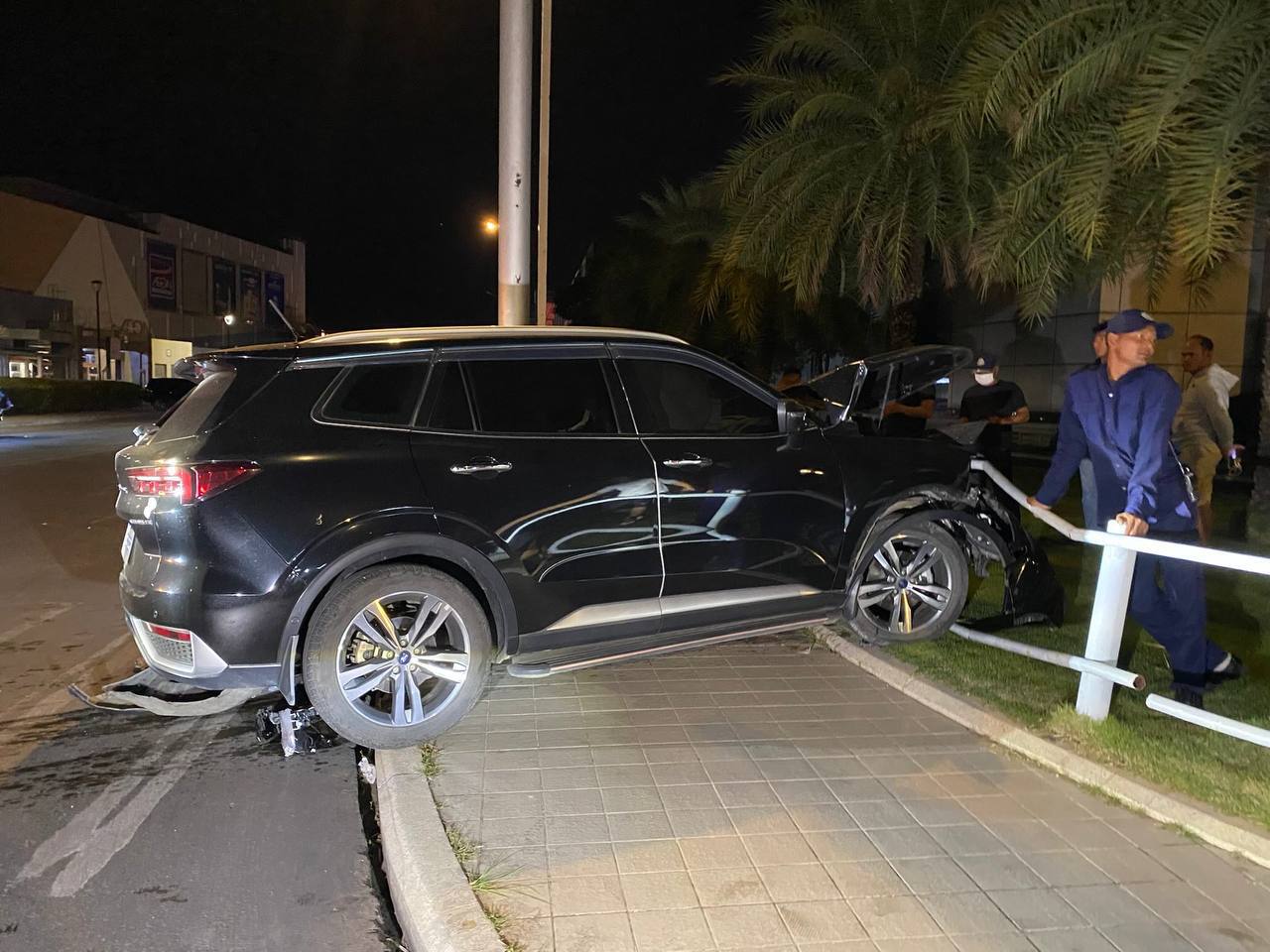 រថយន្ត២គ្រឿងបុកគ្នានៅស្តុបផ្លូវបំបែកជាបួនបណ្តាលឲ្យមួយគ្រឿងរេចង្កូតឡើងខឿនទៅបុកបង្កាន់ដៃព័ទ្ធសួនច្បាររងការខូចខាតយ៉ាងដំណំ