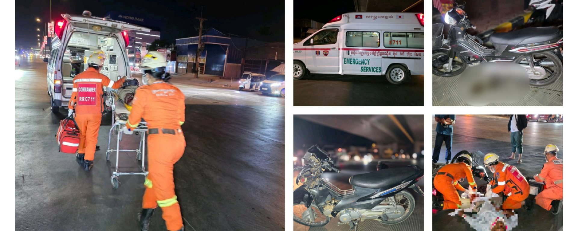 កងសង្គ្រោះបន្ទាន់៧១១កងពលតូចលេខ៧០ដឹកយកទៅមន្ទីរពេទ្យភ្លាមៗបន្ទាប់ពីជួបគ្រោះថ្នាក់ចរាចរណ៍ជិះម៉ូតូបុកគ្នាជាមួយម៉ូតូមួយគ្រឿង​ កាលពីវេលាម៉ោង១២និង១៤នាទីរំលងអាធ្រាត្រ​ ឈានចូល ថ្ងៃទី២៨ ខែធ្នូ ឆ្នាំ២០២៥ នៅផ្លូវជាតិលេខ៤ ភូមិជម្ពូវ័ន១ សង្កាត់ចោមចៅទី៣ ខណ្ឌពោធិ៍សែនជ័យ រាជធានីភ្នំពេញ ។