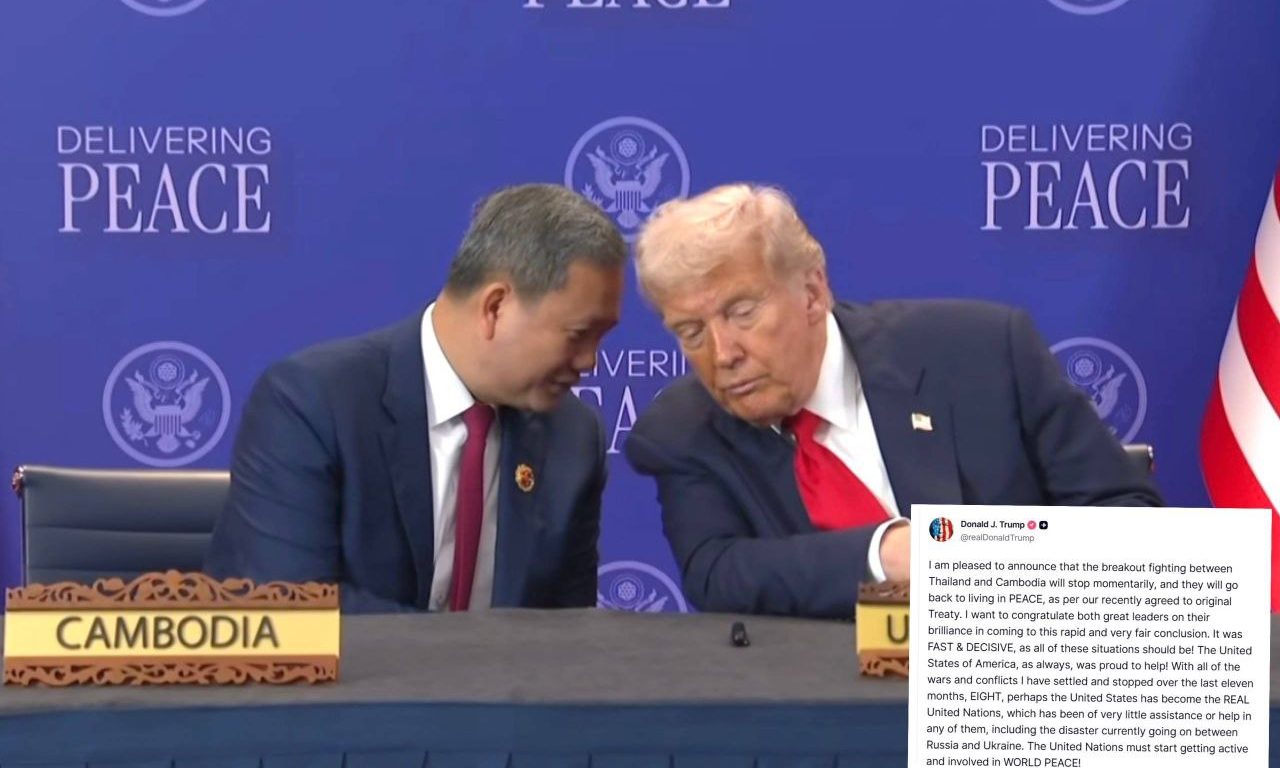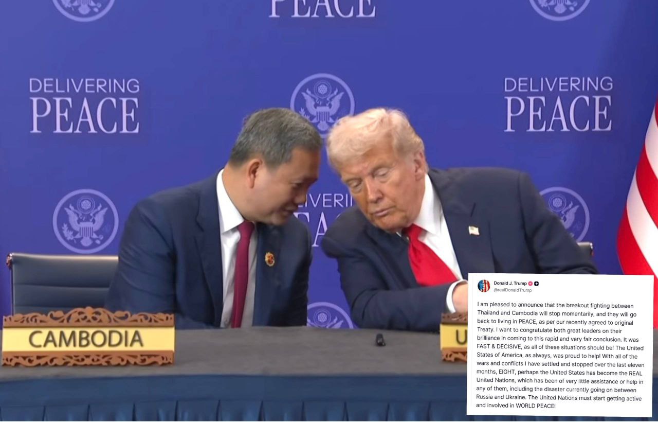 ភ្នំពេញ៖ «ខ្ញុំមានសេចក្តីសោមនស្សរីករាយក្នុងការប្រកាសថា ជម្លោះបាញ់ប្រហារគ្នារវាងកម្ពុជា និងថៃ នឹងបញ្ចប់ក្នុងពេលដ៏ខ្លី ហើយពួកគេនឹងត្រឡប់ទៅរស់នៅក្នុងសន្តិភាពវិញ ដូចដែលយើងបានយល់ព្រមជាមួយគ្នាកាលពីពេលថ្មីៗនេះ»។