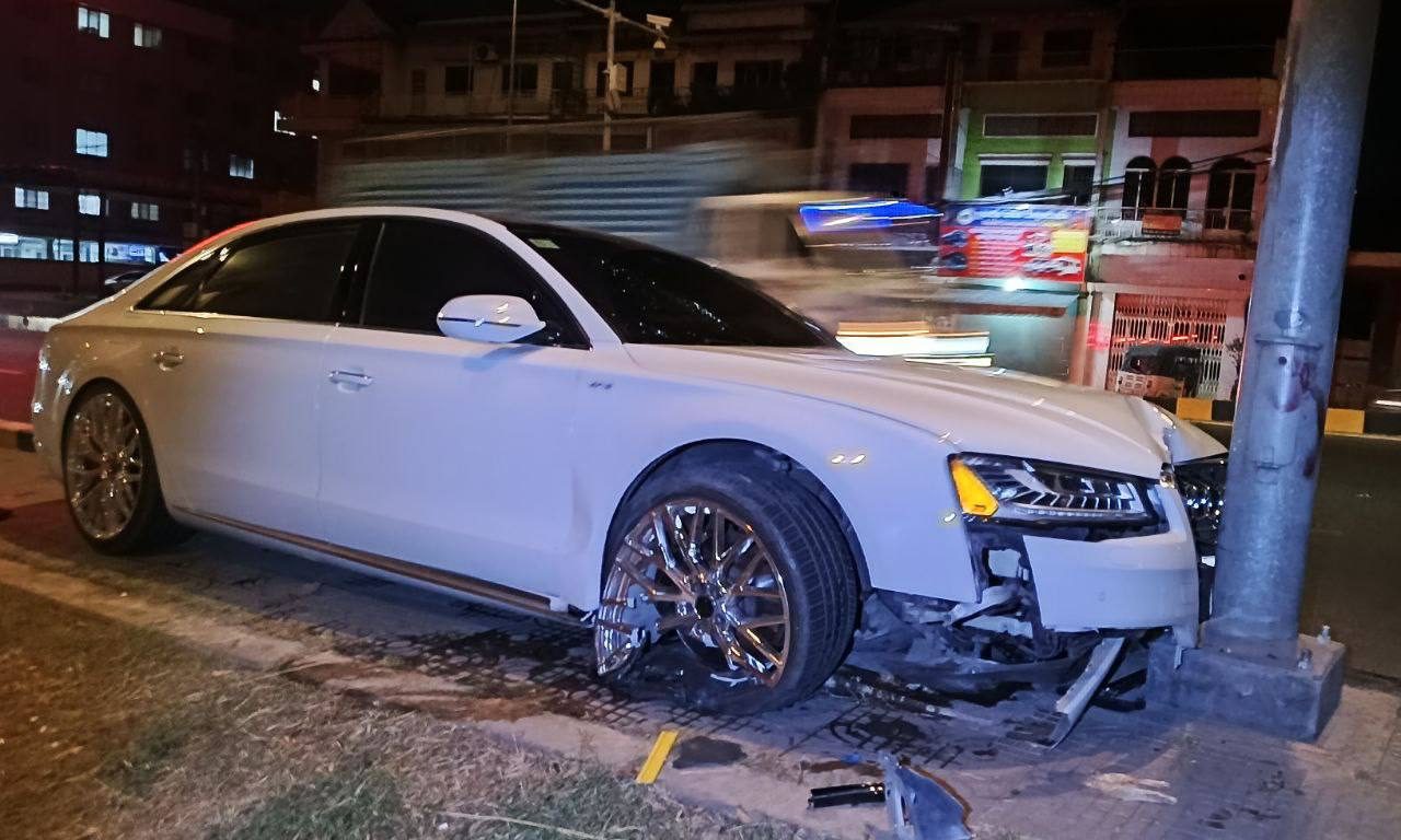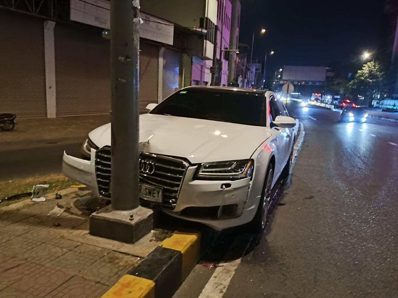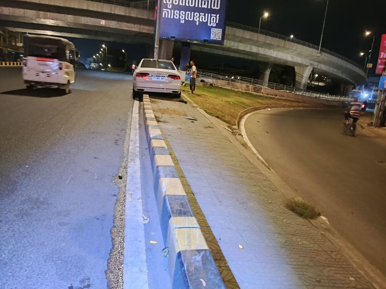 ភ្នំពេញ៖​ បុរសម្នាក់បើករថយន្តស៊េរីទំនើបម៉ាកអូរឌីមួយគ្រឿងក្នុងល្បឿនលឿនរេចង្កូតឡេីងខឿនផ្លូវរថយន្តមិនទាន់អស់ល្បឿនក៏បន្តបុកបង្គោលភ្លេីងបំភ្លឺផ្លូវរងការខូចខាតយ៉ាងដំណំ។