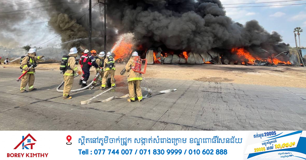 ភ្នំពេញ៖​ ទីតាំងរោងប៉ះនិងស្កុកកង់ឡានមួយកន្លែងត្រូវបានអគ្គិភ័យឆាបឆេះយ៉ាងសន្ធោសន្ធៅបង្កការភ្ញាក់ផ្អេីលដល់បងប្អូនប្រជាពលរដ្ឋនិងក្រុមរថយន្តពន្លត់អគ្គិភ័យចុះមកអន្តរាគមន៍ភ្លាមៗ។
