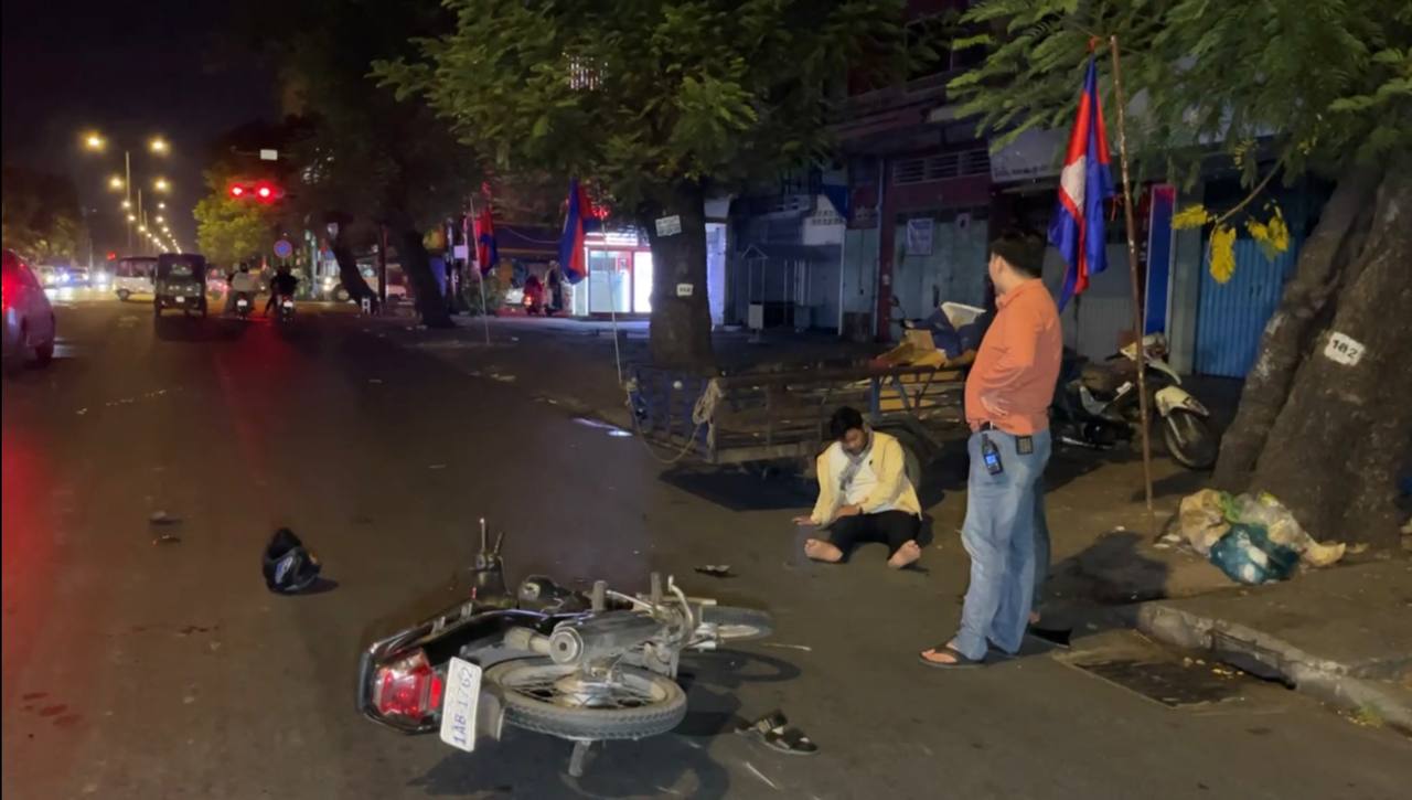 ភ្នំពេញ៖ បុរសម្នាក់ជិះម៉ូតូចេញពីកម្មវិធីជួបជុំផ្ទះបងប្អូន ក៏ជ្រុលទៅបុកនិងរ៉ឺម៉កអេតចាយពីក្រោយបណ្តាលអោយរបួសបែកក្បាល ។