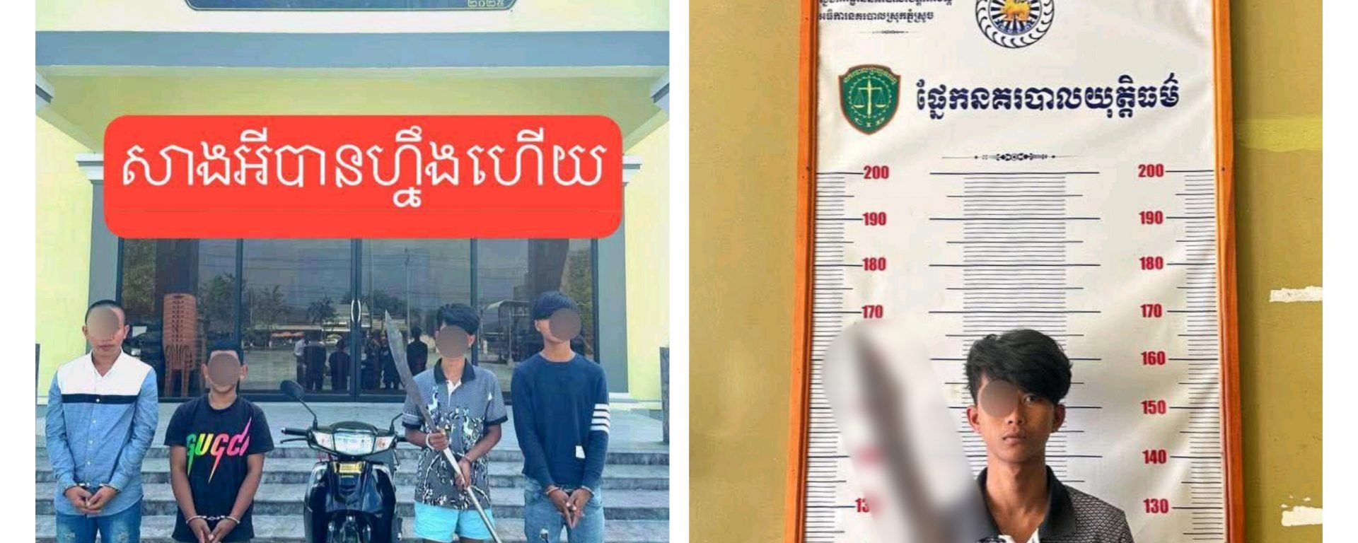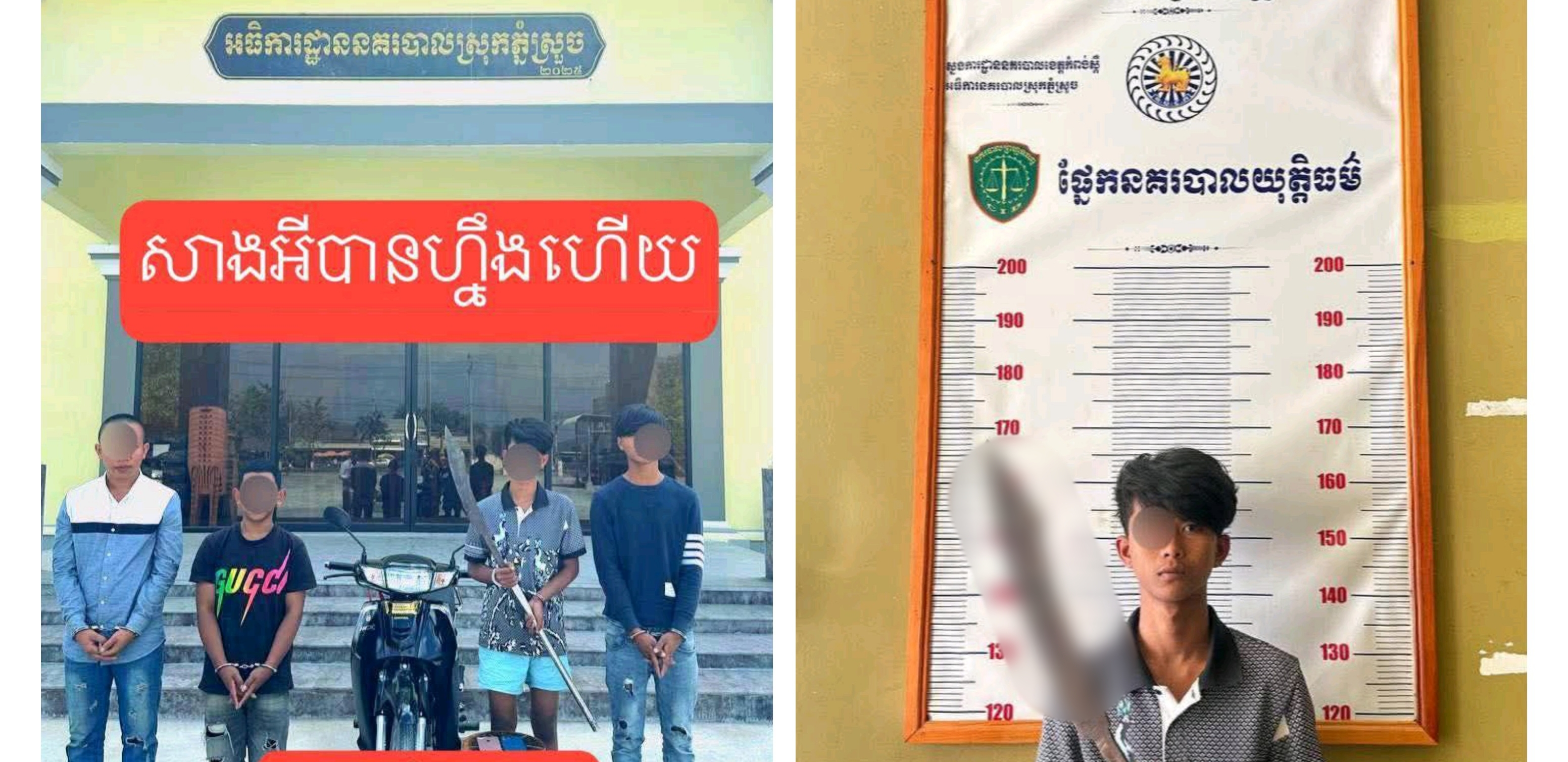 ១-ឈ្មោះ សូ សុវណ្ណារាជ ភេទប្រុសអាយុ១៦ឆ្នាំ រស់នៅភូមិទួល ឃុំមហាសាំង ស្រុកភ្នំស្រួច (ជាម្ចាស់ម៉ូតូនិង ម្ចាស់កាំបិតកែច្នៃ),២-ឈ្មោះ ខុម ដានុន ភេទប្រុ​ស អាយុ១៥ឆ្នាំ រស់នៅភូមិព្រៃស្តុក ឃុំមហាសាំង ស្រុកភ្នំស្រួច,៣-ឈ្មោះ ញ៉ម បូរ៉ា ភេទប្រុស អាយុ១៧ឆ្នាំ រស់នៅភូមិស្លែង ឃុំម​ហាសាំង ស្រុកភ្នំស្រួចនិង ៤- ឈ្មោះ ប៊ុន ថេតសុវណ្ណរ័ត្ន ភេទប្រុស អាយុ១៥ឆ្នាំ រស់នៅភូមិទួលសុភី ឃុំតាំងក្រូច ស្រុកសំរោងទង ខេត្តកំពង់ស្ពឺ ។