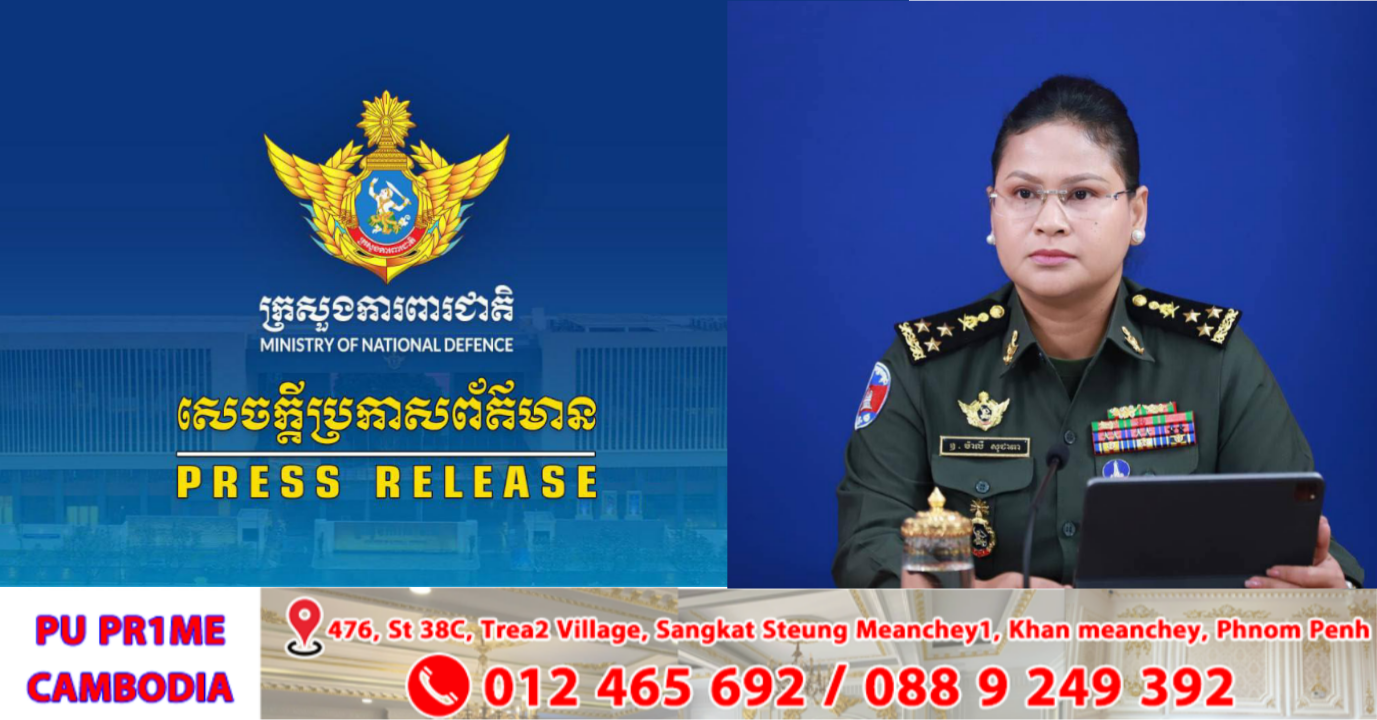 ភ្នំពេញ៖ យោងតាមសេចក្ដីប្រកាសព័ត៌មានរបស់លោកស្រី ឧត្តមសេនីយ៍ឯក ម៉ាលី សុជាតា អ្នកនាំពាក្យក្រសួងការពារជាតិ នៃព្រះរាជាណាចក្រកម្ពុជា នៅថ្ងៃអង្គារ ៣រោច ខែបុស្ស ឆ្នាំម្សាញ់ សប្តស័ក ព.ស ២៥៦៩ ត្រូវនឹងថ្ងៃទី៦ ខែមករា ឆ្នាំ២០២៦នេះ សូមជម្រាបជូនសាធារណជន អ្នកសារព័ត៌មានជាតិ និងអន្តរជាតិមេត្តាជ្រាបថា៖