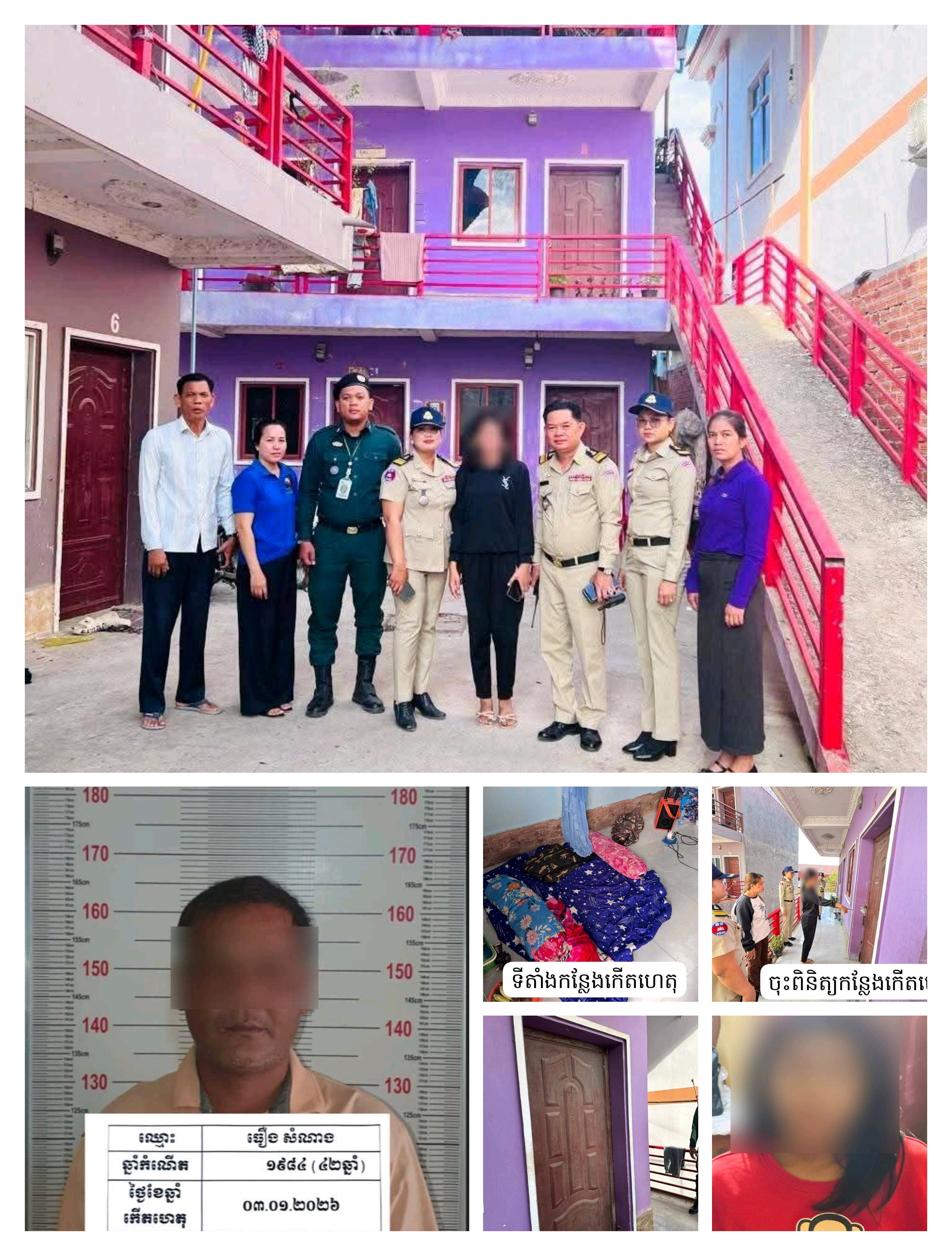 យោងតាមពាក្យបណ្ដឹងរបស់ម្ដាយជនរងគ្រោះបានឲ្យដឹងថា កាលពីថ្ងៃទី០៣ ខែមករា ឆ្នាំ២០២៦ វេលាម៉ោង១៩:០០នាទី បន្ទាប់ពីបាត់កូនស្រីមួយសន្ទុះធំ អ្នកជិតខាងប្រាប់ថា ឃើញជនរងគ្រោះទៅលេងនៅបន្ទប់ជន សង្ស័យ។ ភ្លាមនោះ គាត់បានឡើងទៅគោះទ្វារបន្ទប់ជនសង្ស័យជាច្រើនដង ទើបជនសង្ស័យបើកទ្វារក្នុងស្ថានភាពស្លៀកពាក់មិនរៀបរយ (ស្លៀកកន្សែង ពោះគោ) និងព្យាយាមបិទបាំងមិនឲ្យចូលឆែកឆេរ។ ទោះបីជាជនសង្ស័យបដិសេធយ៉ាងណាក្តី ក៏ម្ដាយបានស្រែកហៅកូនស្រីរហូតឮសំឡេងឆ្លើយពីក្នុងបន្ទប់ទឹក ទើបដឹងថាមានរឿងមិនប្រក្រតី។