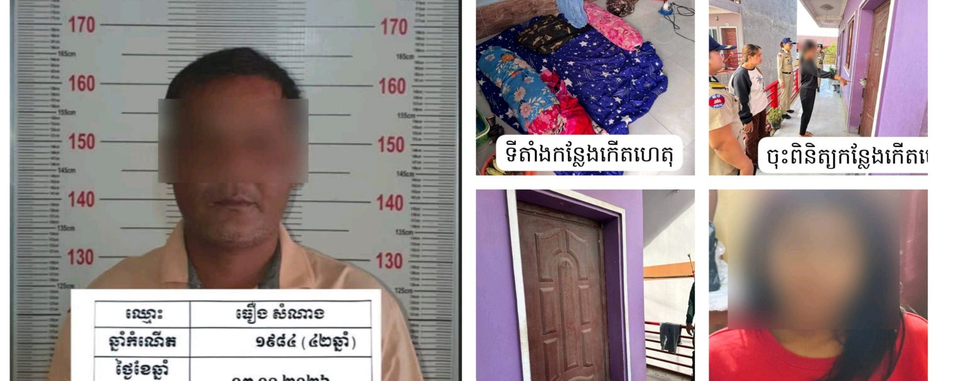 សមត្ថកិច្ចបានឲ្យដឹងថា ជនសង្ស័យដែលត្រូវបានឃាត់ខ្លួននោះមានឈ្មោះ ធឿង សំណាង ភេទប្រុស អាយុ៤១ឆ្នាំ មុខរបរអ្នកបើកបរ ស្នាក់នៅផ្ទះជួលកន្លែងកើតហេតុខាងលើ (ពិនិត្យទឹកនោមអវិជ្ជមាន)។ ចំណែកជនរង គ្រោះគឺជាយុវតីវ័យ១៨ឆ្នាំម្នាក់ ដែលជាជនភៀសសឹកមកពីខេត្តបាត់ដំបងនិងមានសតិមិនគ្រប់ ស្នាក់នៅជាមួយឪពុកម្ដាយក្នុងបរិវេណផ្ទះជួលជាមួយគ្នា។