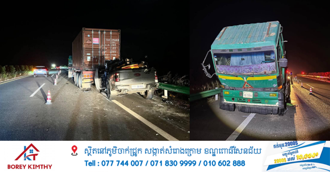 ខេត្តកំពង់ស្ពឺ÷ នៅយប់ថ្ងៃទី៧ ខែមករា ឆ្នាំ២០២៦ ម៉ោង ២២និង២០នាទី នៅលើផ្លូវល្បឿនលឿនគីឡូម៉ែត្រលេខ ៧៥+៤០០ (ទិសដៅព្រះសីហនុ-ភ្នំពេញ) នៅភូមិទី៤ ឃុំត្រែងត្រយឹង ស្រុកភ្នំស្រួច មានរថយន្ត១គ្រឿង ម៉ាក Ford Rapter ពណ៌ប្រផេះ ពាក់ផ្លាកលេខព្រះសីហនុ 2D-8691 បើកបរដោយឈ្មោះ Christoper ភេទ ប្រុស អាយុ ៣២ឆ្នាំ ជនជាតិឥណ្ឌូនេស៉ី ស្នាក់នៅខេត្តព្រះសីហនុ និងអ្នករួមដំណេីរក្នុងរថយន្ដចំនួន៤នាក់ ស្រី២នាក់÷