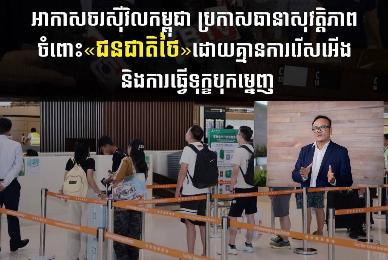 អ្នកនាំពាក្យអាកាសចរស៊ីវិលរូបនេះ បានគូសបញ្ជាក់ថា អ្នកដំណើរជនជាតិថៃ ដែលធ្វើដំណើរចាកចេញពីកម្ពុជា ទៅកាន់ប្រទេសថៃវិញ ហើយមានប្រវត្តិធ្វើ ដំណើរច្បាស់លាស់ ដែលកត់ត្រាក្នុងប្រព័ន្ធធ្វើដំណើរ គឺមិនមានការសួរនាំអ្វីនោះទេ។ ជាមួយគ្នានេះ ចំពោះអ្នកដំណើរជនជាតិថៃ ដែលធ្វើដំណើរចូលកម្ពុជា ហើយ មិនមានប្រវត្តិចូលមកកម្ពុជាគឺសមត្ថកិច្ចមានការអនុវត្តវិធានការរក្សាសុវត្ថិភាព និងសន្ដិសុខមួយចំនួន តាមរយៈសំណួរ-ចម្លើយ និងតម្រូវឱ្យមានការបង្ហាញឯកសារអំណះអំណាង និងគាំទ្របន្ថែមនៅក្នុងប្រទេសកម្ពុជាផងដែរ។