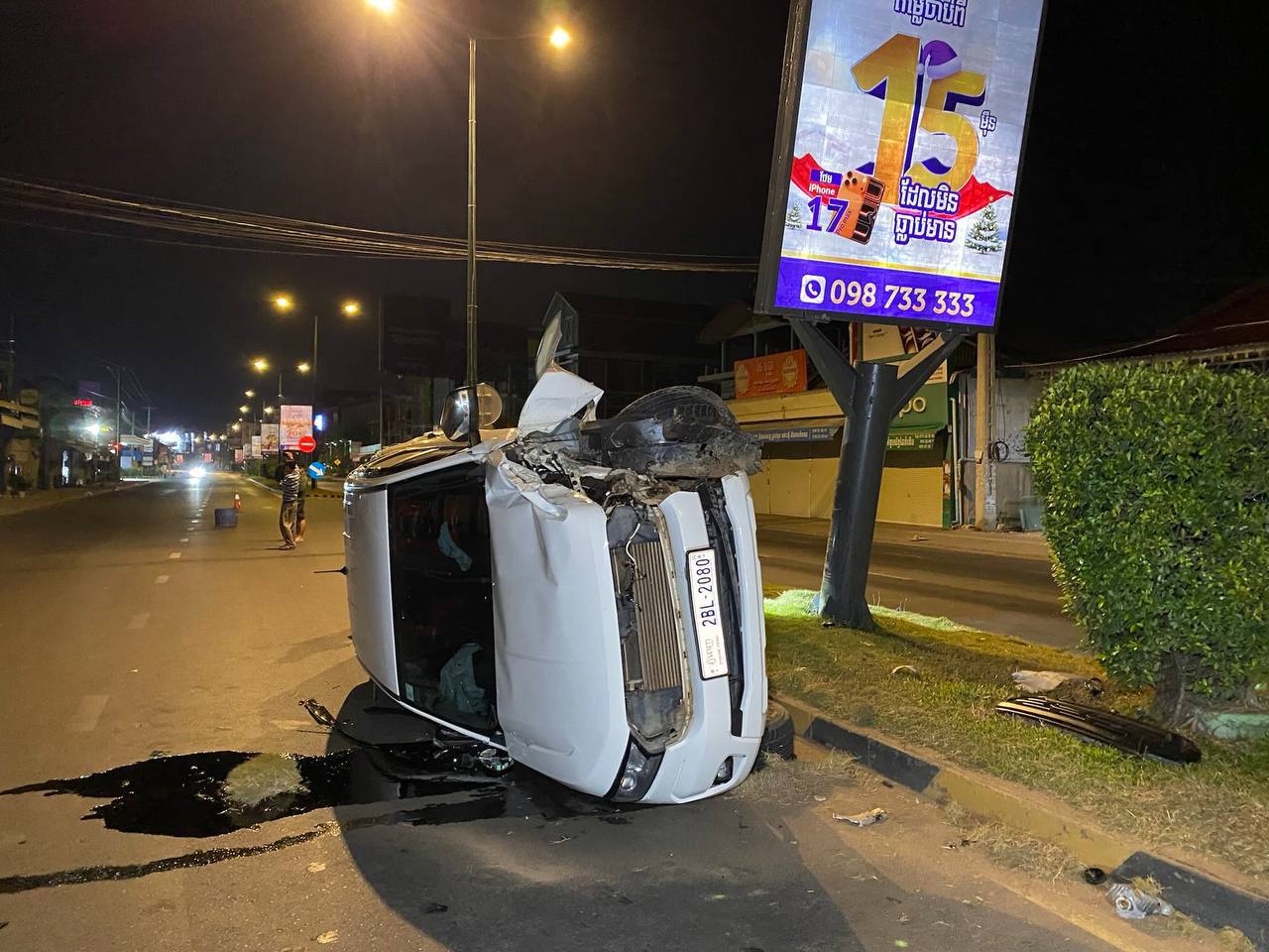 តាមប្រភពពីកន្លែងកើតហេតុបានឲ្យដឹងថា នៅមុនពេលកើតហេតុគេឃើញរថយន្តបង្កមួយគ្រឿងម៉ាក FORD RANGER ពណ៌សពាក់ផ្លាកលេខ ភ្នំពេញ 2BL-2080 បើកបរដោយបុរសម្នាក់ធ្វើដំណើរតាមបណ្តោយផ្លូវជាតិលេខ៦Aទិសដៅពីត្បូងទៅជើងក្នុងល្បឿនលឿនមិនប្រយ័ត្នក៏បានរ៉េចង្កូតទៅបុកឡើងសួនច្បារ ពុះចែកទ្រូងផ្លូវ រួចបន្តទៅបុកស្លាកប៉ាណូផ្សាយពាណិផ្ជកម្មបណ្តាលឲ្យបាក់ទ្រតចំនួនមួយដើម ចំណែកឯរថយន្តបង្កត្រូវបានក្រឡាប់ផ្ងារជើងរងការខូចខាតយ៉ាងដំណំ សំណាងល្អមិនបង្កឲ្យមានគ្រោះថ្នាក់ដល់មនុស្ស ហើយភ្លាមនោះដែរម្ចាស់រថយន្តបានយកសម្ភារៈមានតម្លៃចេញពីក្នុងរថយន្តរួចគេចពីកន្លែងកើតហេតុបាត់ស្រមោល។
