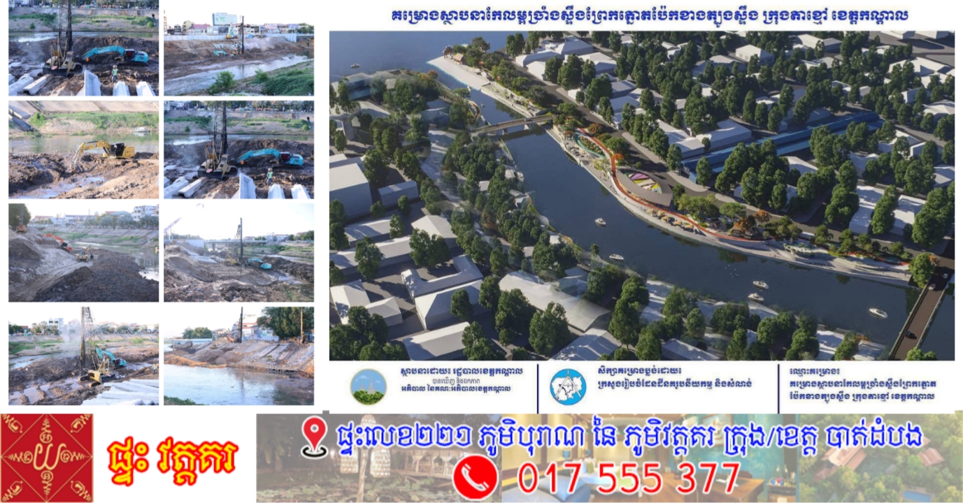 ខេត្តកណ្តាល ៖ សួនច្បារស្ទឹងព្រែកត្នោត បែបស៊ីវីល័យ ស្រស់ស្អាត និង ទាន់សម័យ នៅប៉ែកខាងត្បូងស្ទឹង ក្រុងតាខ្មៅ ខេត្តកណ្តាល ត្រូវបានបើកការដ្ឋានសាងសង់ជាផ្លូវការ។គម្រោងស្ថាបនាកែលម្អច្រាំងស្ទឹងព្រែកត្នោតនេះ មានប្រវែងសួនសាធារណៈ ៥៩០ម៉ែត្រ និង គ្រឿងបង្គំថ្មីប្រវែង ៤៥០ម៉ែត្រ គ្រោងនឹងបញ្ចប់ការសាងសង់ ១០០% នៅចុងឆ្នាំ២០២៦។
