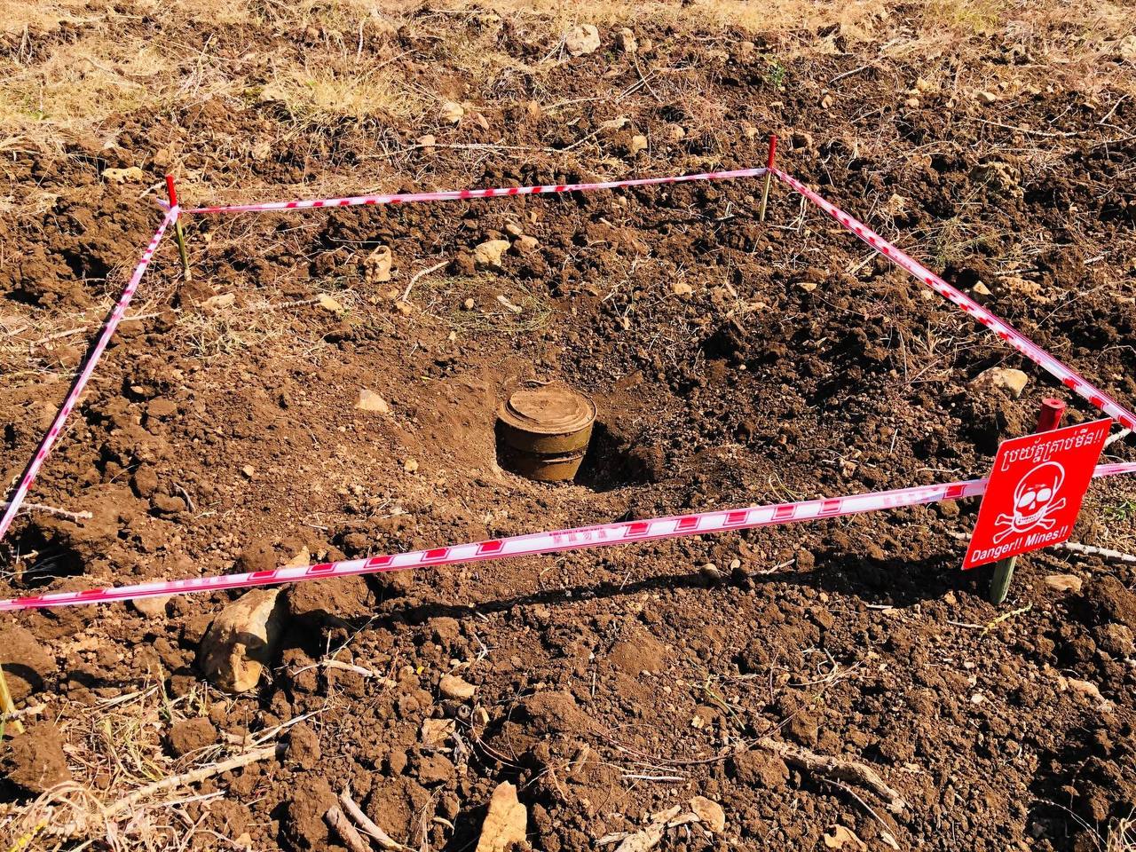 ខេត្តបាត់ដំបង៖ លោក ហេង រតនា ប្រធានអង្គភាពស៉ីម៉ាក់ បានថ្លែងថា នៅថ្ងៃសៅរ៍ ទី១០ មករា ឆ្នាំ២០២៦នេះ កម្លាំងជំនាញអង្គភាពCMAC ចុះទៅបោសសម្អាតមីនបេីកតំបន់សុវត្ថិភាពនៅកន្លែងផ្ទុះរថយន្តឆ្នៃស្ថិតនៅក្នុងចម្ការដំឡូងមី ភូមិវាលវង់ ឃុំតាស្តា ស្រុកសំពៅលូន ខេត្តបាត់ដំបងនោះ បានរកឃេីញគ្រាប់មីនតោន៣រណ្តៅសុទ្ធតែដាក់គ្រាប់មីនតោនត្រួតគ្នាចំនួន២គ្រាប់ សរុបចំនួន៦គ្រាប់ ស្ថិតនៅក្បែរៗកន្លែងផ្ទុះនោះ។