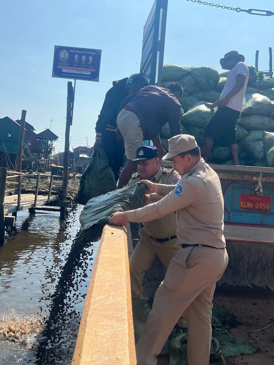 ឧត្តមសេនីយ៍ត្រី ណុប សារ៉ាក់ មានប្រសាសន៍បញ្ជាក់ថា ចំណាត់ការរបស់សមត្ថកិច្ច,ចាប់យកវត្ថុតាង ដែលមានលៀសទម្ងន់ ២៨,៧៥០Kg ចាក់ចូលក្នុងបឹង ទន្លេ សាបវិញ ស្ថិតនៅព្រែកឃ្លាំងមុខវត្តស្តីភូមិព្រែកស្រមោច និងភូមិតាច្រនាង ឃុំកំពង់ឃ្លាំង ស្រុកសូទ្រនិគម ខេត្តសៀមរាប ហើយមធ្យោបាយដឹកជញ្ជូន ០២គ្រឿង គឺកំលាំងជំនាញប្រឆាំងបទល្មើសសេដ្ឋកិច្ច បានរៀបចំបញ្ជូនទៅមន្ត្រីខណ្ឌរដ្ឋបាលជលផលតាមនីតិវិធី ដើម្បីកសាងសំនុំរឿងចាត់ការបន្តទៅកាន់ស្ថាប័នអយ្យការ អមសាលាដំបូងខេត្តសៀមរាប អនុវត្តទៅតាមច្បាប់ស្តីពីជលផលនៃព្រះរាជាណាចក្រកម្ពុជា៕