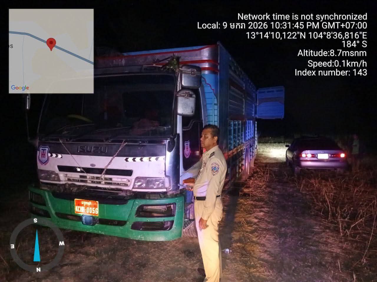 ២ .រថយន្តម៉ាក អុីស៊ុយស៊ុយ (ISUZU) ពណ៌ផ្ទៃមេឃពាក់ផ្លាកលេខ ចង្កូតស្តាំ KCHH-0056 ដឹកលៀសគ្មានលិខិតអនុញ្ញាតចំនួន ២១.២៥០គីឡូក្រាម និងមានផ្លាកលេខ ភ្នំពេញ 3B-0930 មិនប្រក្រតីចំនួន១គូនៅលើរថយន្តថែមទៀត ម្ចាស់រថយន្តរត់គេចខ្លួនបាត់ (ប្រើប្រាស់ឯកសារសាធារណ:ក្លែង)។