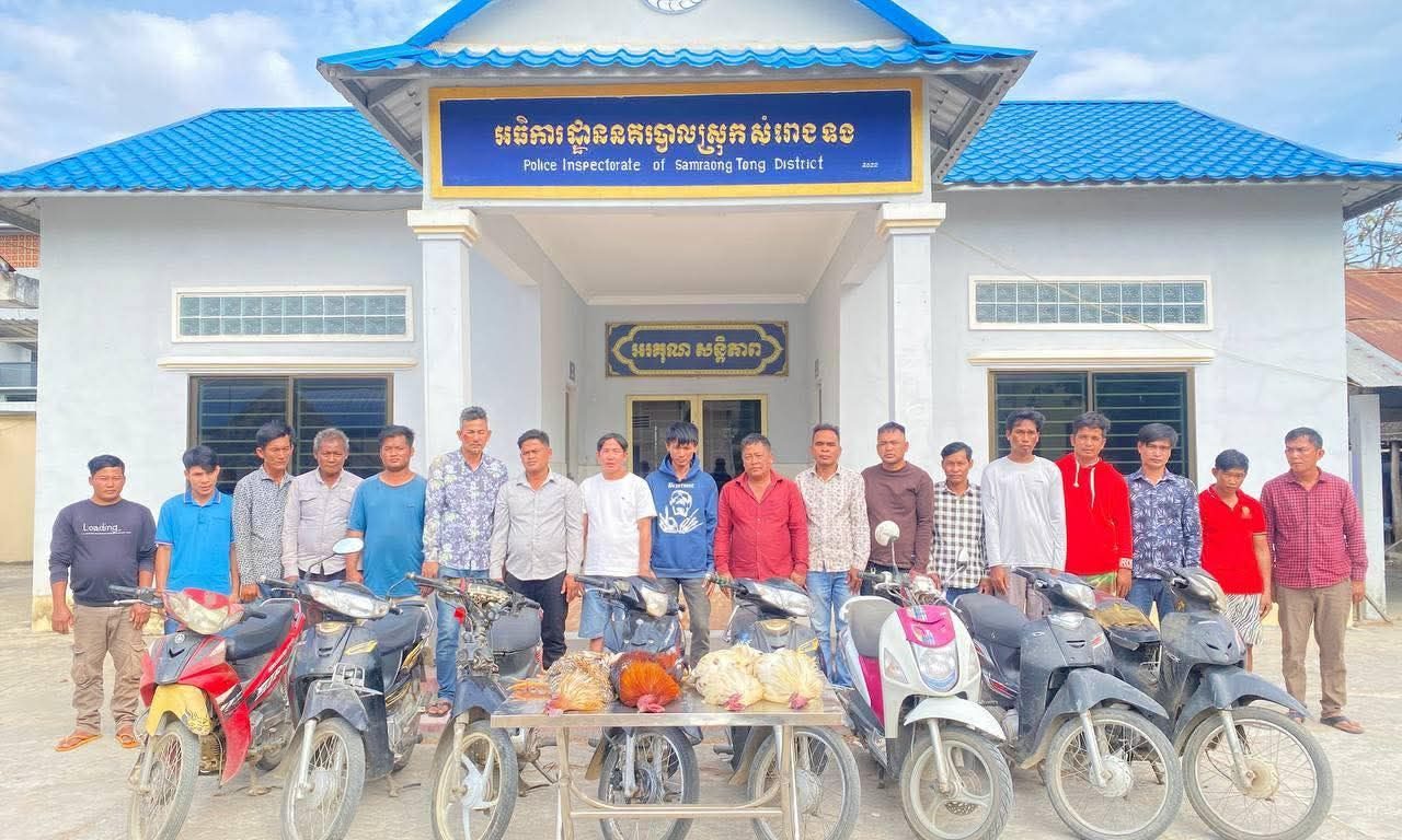 ខេត្តកំពង់ស្ពឺ៖ ដោយអនុវត្តតាមបញ្ជាដឹកនាំរបស់លោកឧត្ដមសេនីយ៍ទោ ឃឹម សុកខៃ ស្នងការនគរបាលខេត្ដកំពង់ស្ពឺ នៅរសៀលថ្ងៃទី១១ ខែមករា ឆ្នាំ២០២៦ កម្លាំងអធិការដ្ឋាននគរបាលស្រុកសំរោងទង ដឹកនាំដោយលោកវរសេនីយ៍ឯក ឃុត សុផល អធិការនគរបាលស្រុក បានបេីកប្រតិបត្ដិការបង្រ្កាបល្បែងសុីសងបញ្ជល់មាន់មួយកន្លែងស្ថិតនៅដីឡូត៍ទំនេរក្នុងភូមិព្រៃគុយ ឃុំត្រពាំងគង។