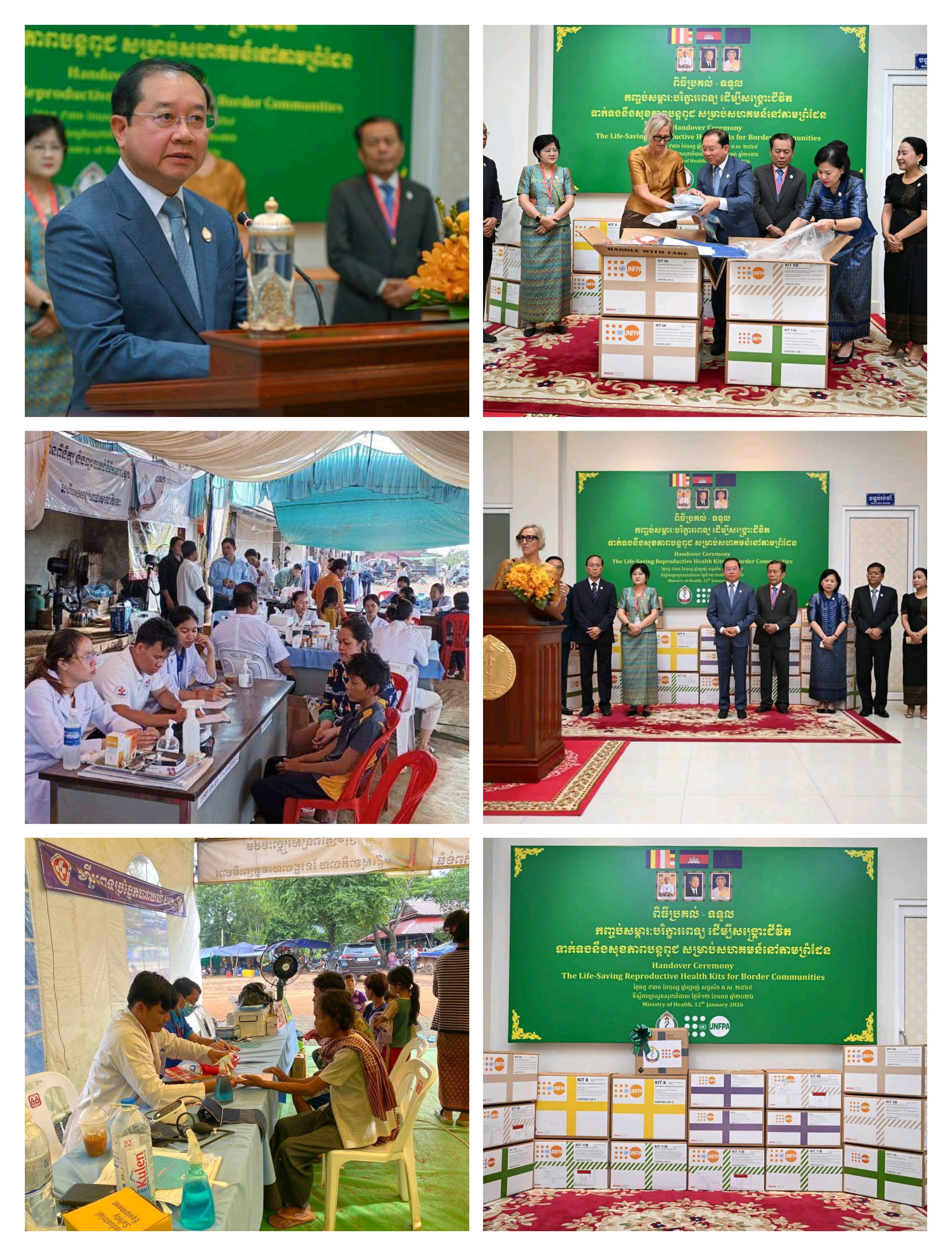 ពិធីនេះ ធ្វើឡើងក្រោមអធិបតីភាព រដ្ឋមន្ត្រីសុខាភិបាកម្ពុជា លោកសាស្ត្រាចារ្យ ឈាង រ៉ា នៅថ្ងៃទី១២ ខែមករា ឆ្នាំ២០២៦នេះ។ លោករដ្ឋមន្រ្តី បានថ្លែងអំណរគុណយ៉ាងជ្រាលជ្រៅចំពោះ អង្គការ UNFPA ដែលបានផ្តល់ការគាំទ្រទាន់ពេលវេលា និងប្រកបដោយតម្លៃមិនអាចកាត់ថ្លៃបាន ដល់រាជរដ្ឋាភិបាលកម្ពុជា ជាពិសេសសម្រាប់ស្ត្រី មាតា និងទារក ដែលរងផលប៉ះពាល់ដោយសារជម្លោះនៅតាមតំបន់ព្រំដែន ហើយ «កញ្ចប់សម្ភារទាំង៧០ ដែលរួមមានឧបករណ៍វេជ្ជសាស្ត្រសង្គ្រោះជីវិត និងឱសថសំខាន់ៗនឹងត្រូវដាក់ពង្រាយ ដើម្បីធានានិរន្តរភាពនៃសេវាថែទាំមាតា និងទារក ការពារហានិភ័យនៃការស្លាប់របស់មាតា និងឆ្លើយតបទៅនឹងតម្រូវការសុខភាពរបស់ប្រជាពលរដ្ឋដែលភៀសខ្លួន»។