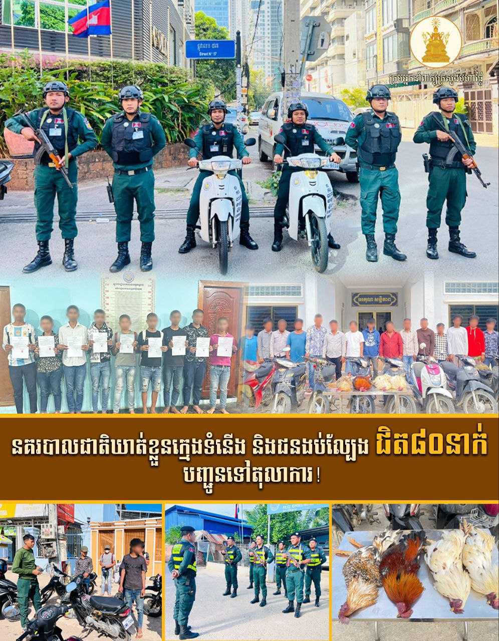 គួរកត់សម្គាល់ថាក្នុងសប្ដាហ៍ទី១ ខែមករា សមត្ថកិច្ចនគរបាលជាតិ បានបង្ក្រាបករណីក្មេងទំនើង១៧ករណី ឃាត់ខ្លួនមនុស្ស៥០នាក់បញ្ជូនទៅតុលាការ និងបានបង្ក្រាបករណីល្បែងស៊ីសងចំនួន៣ករណី ឃាត់ខ្លួនជនងប់ល្បែងចំនួន៩នាក់បញ្ជូនទៅតុលាការ៕