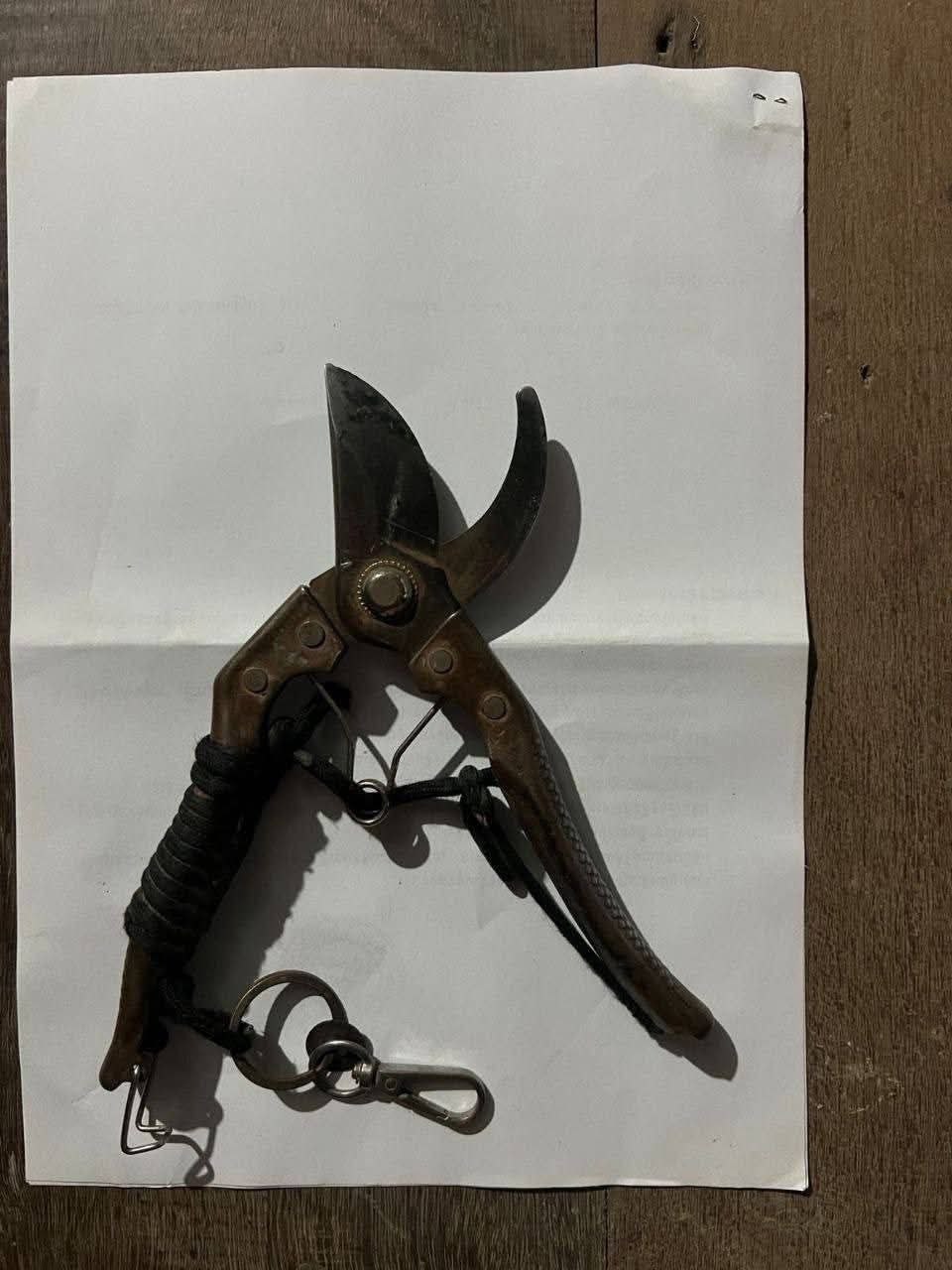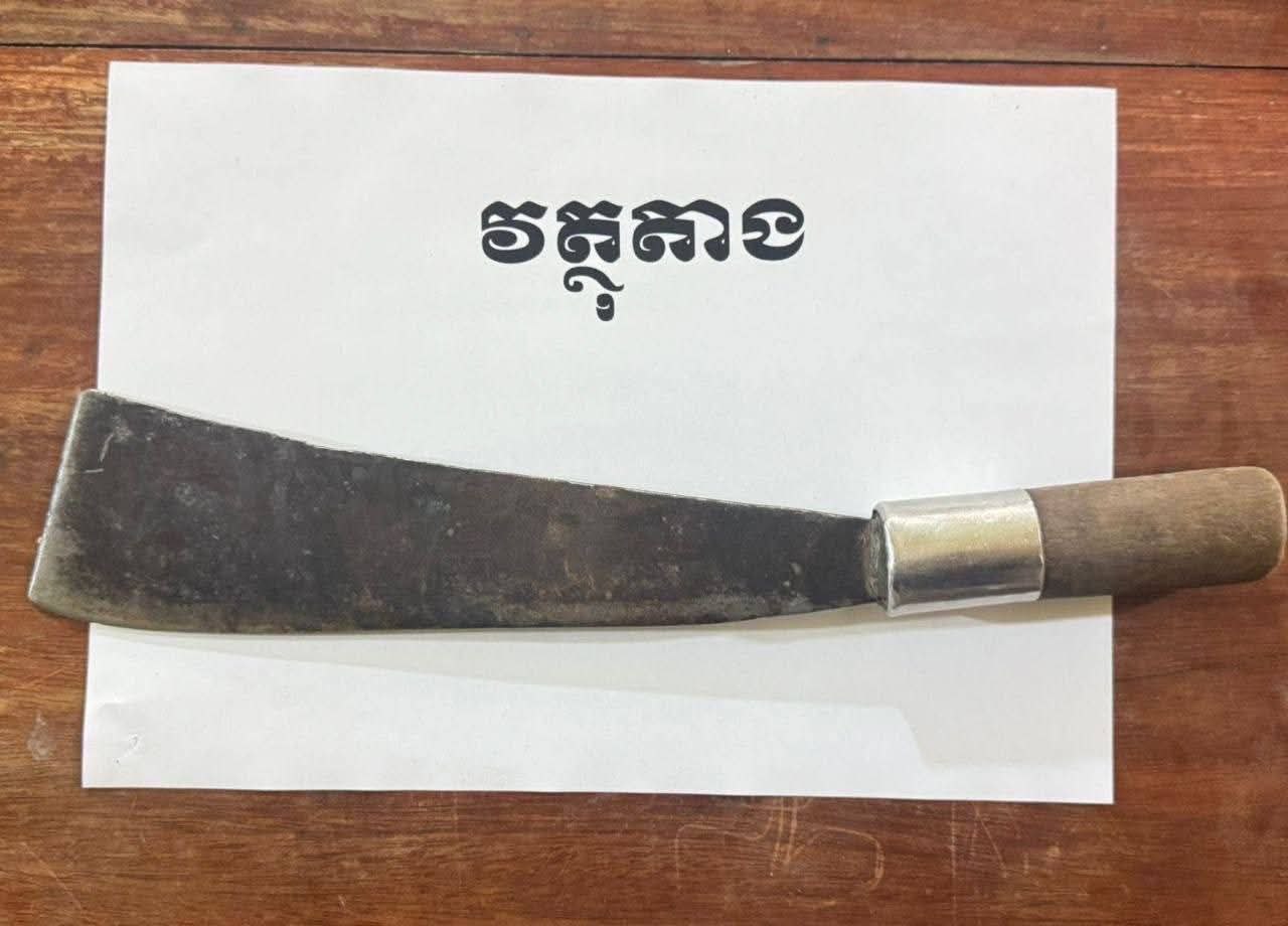 លោកអធិការបានបន្តថា វត្ថុតាងដែលដកហូតបានរួមមាន កាំបិតត្នោតផ្លែដែកដងឈើ១, ខ្សែភ្លើងពណ៌ខ្មៅ១ដុំ (របស់ជនរងគ្រោះ) និងកន្ត្រៃដែកសម្រាប់កាត់ខ្សែភ្លើង១។