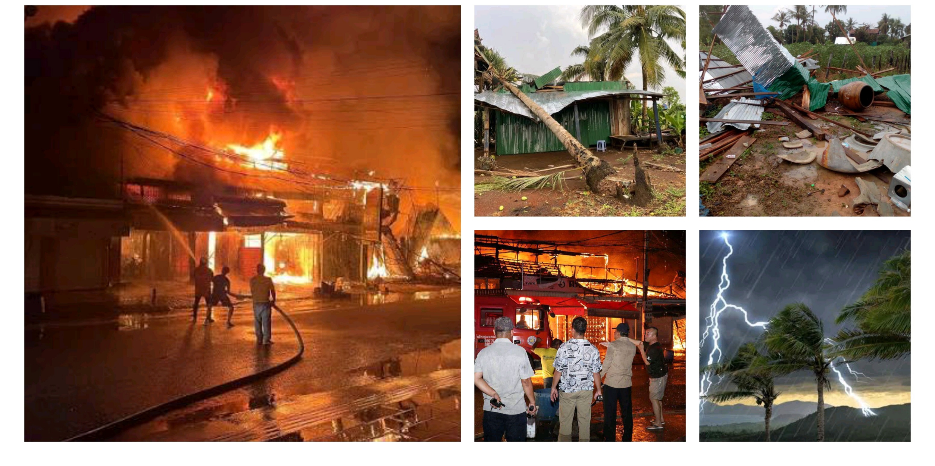 ក្នុងនោះគ្រោះអគ្គិភ័យបានកើតឡើង ចំនួន៨២៣ បណ្ដាលឲ្យមនុស្សស្លាប់ចំនួន២០ នាក់ និងរងរបួសចំនួន ៥៩ នាក់ ឆេះផ្ទះ៨៣៧ ខ្នង តូបផ្សារ២៧៤ តូប ឃ្លាំងទំនិញ ២៤ កន្លែង រោងចក្រសិប្បកម្ម ២៥ កន្លែងនិងអគាររដ្ឋបាល ២៧កន្លែងស្លាប់មនុស្ស២០នាក់និងរបួស៥៩នាក់ ។ គ្រោះរន្ទះបាញ់បានកើតឡើងចំនួន ១២៥ លើកបណ្តាលឲ្យខូចខាតផ្ទះសម្បែងចំនួន ៣១ ខ្នងស្លាប់មនុស្ស ៦៨ នាក់ របួស ៥៥ នាក់ និងងាប់គោក្របី ៤៥ ក្បាលនិងខ្យល់កន្ត្រាក់បានកើតឡើងចំនួន ២៩៥លើក បណ្ដាលឲ្យរលំផ្ទះចំនួន ៥៤៨ខ្នង របើកដំបូលផ្ទះ ៤៦៣៧ ខ្នង របើកដំបូលសាលារៀន ៥១ ខ្នងតូបផ្សារ៤០ តូប អគាររដ្ឋបាល ២៣ កន្លែង ស្លាប់មនុស្ស ៧ នាក់ និងរបួស៣៩ នាក់៕