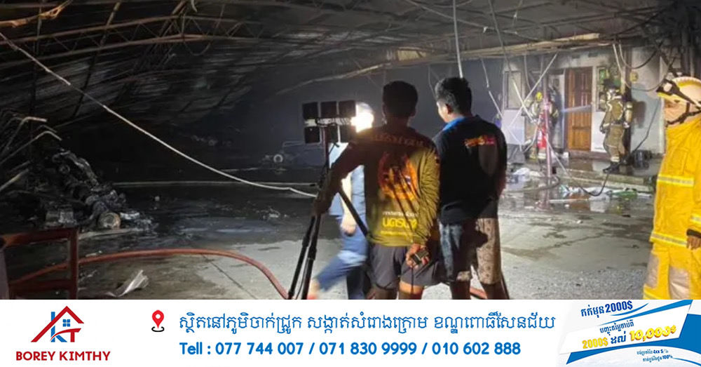 ហេតុការណ៍នេះបានកើតឡើងនៅអាជីវកម្មមួយដែលមានទីតាំងនៅតំបន់មូ ១៩ ស្រុករងសាស៊ីមុំ។ ស្ថានីយ៍ប៉ូលីសស្រុកកំផែងសែនបានទទួលរបាយការណ៍អំពីអគ្គីភ័យនៅយានដ្ឋាននៅម៉ោង ៦:២០ ព្រឹក ថ្ងៃទី១៧ ខែមករា។