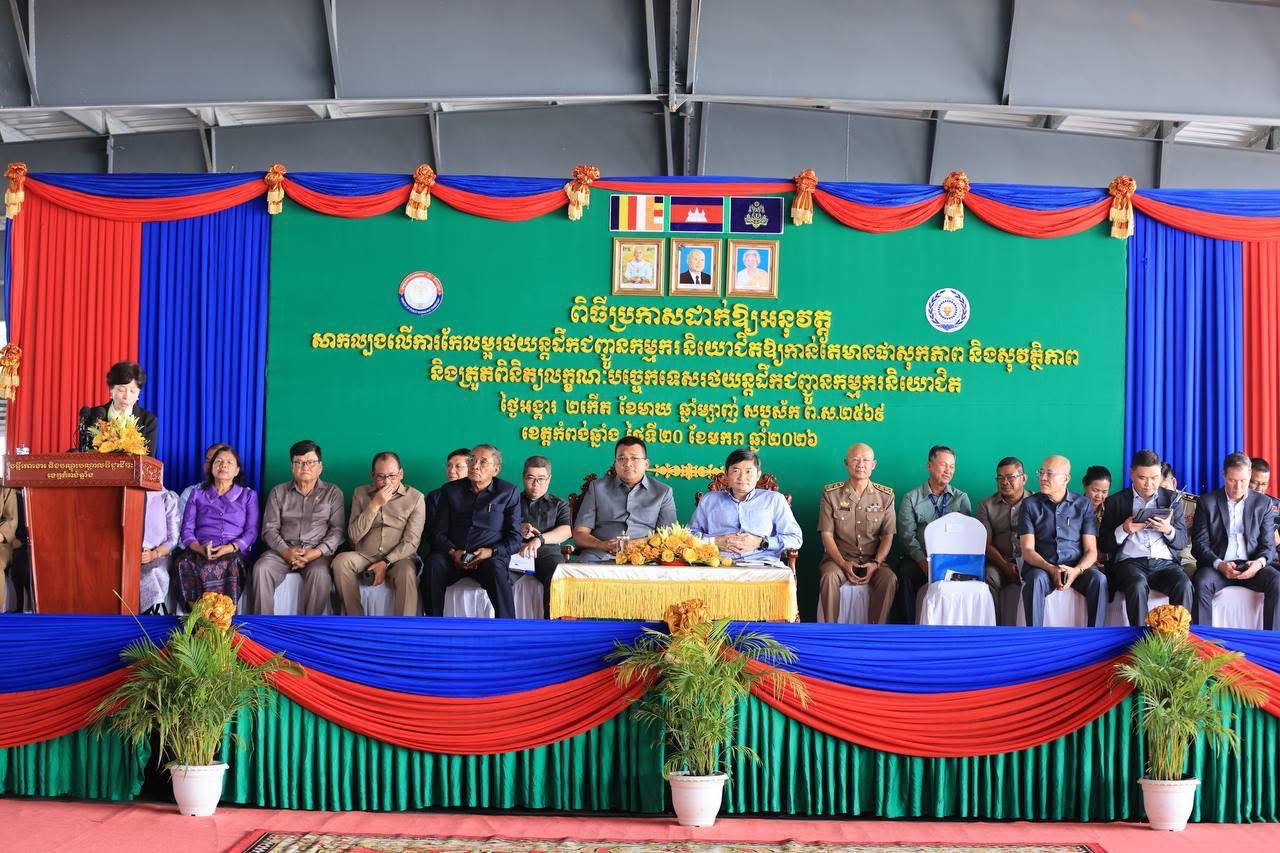 ខេត្តកំពង់ឆ្នាំង៖ លោក ប៉េង ពោធិ៍នា រដ្ឋមន្រ្តីក្រសួងសាធារណការ និងដឹកជញ្ជូន និងលោក ហេង សួរ រដ្ឋមន្ត្រីក្រសួងការងារ និងបណ្តុះបណ្តាលវិជ្ជាជីវៈ នារសៀលថ្ងៃអង្គារ ទី២០ ខែមករា ឆ្នាំ២០២៦ បានអញ្ជើញជាសហអធិបតីក្នុងពិធីប្រកាសដាក់ឱ្យអនុវត្តសាកល្បងលើការកែលម្អរថយន្តដឹកជញ្ជូនកម្មករនិយោជិតឱ្យកាន់តែមានផាសុកភាព និងសុវត្ថិភាព និងត្រួតពិនិត្យលក្ខណៈបច្ចេកទេសរថយន្តដឹកជញ្ជូនកម្មករនិយោជិត ។