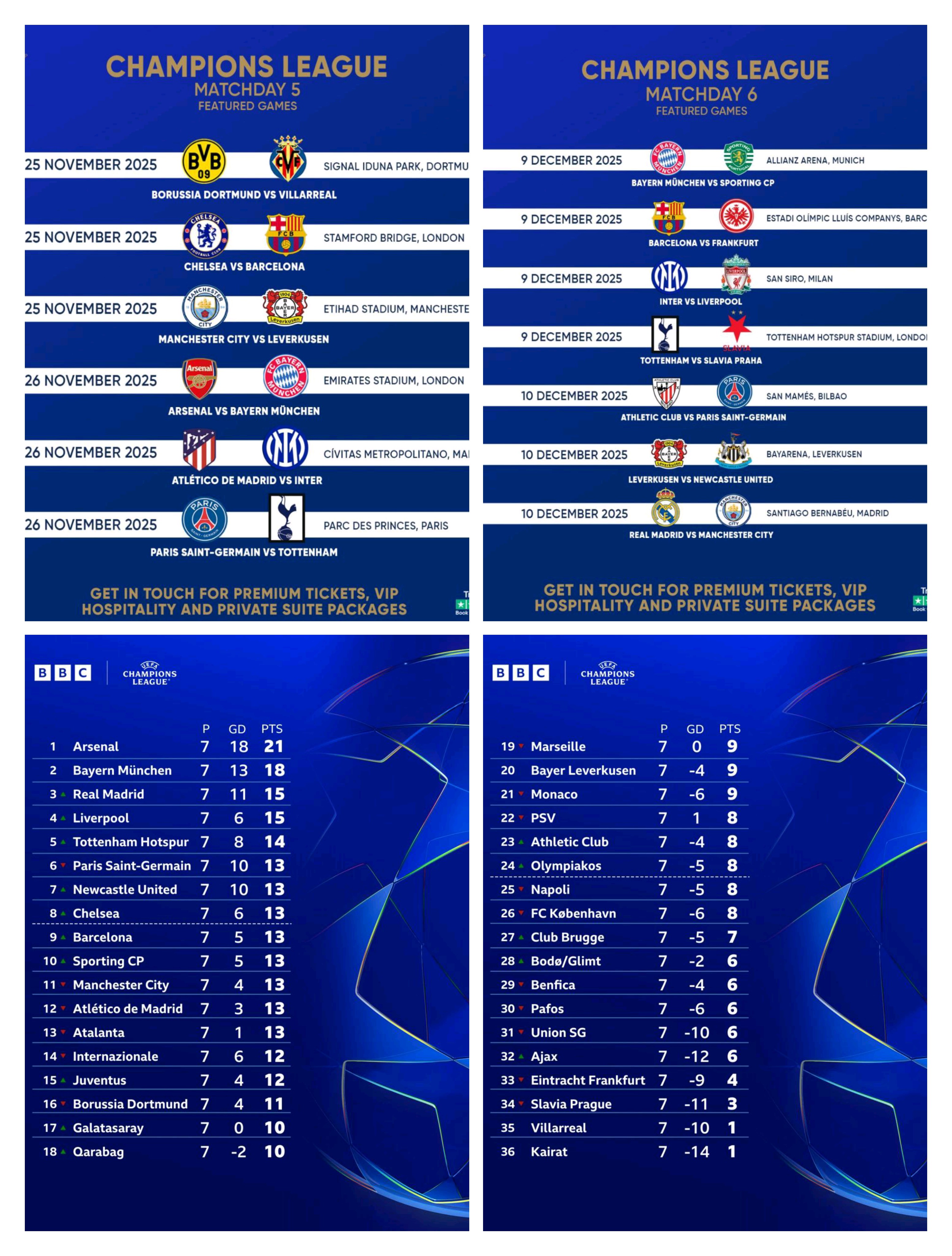 ក្រុមនាំមុខកំពូលតារាង Arsenal បានឈ្នះការប្រកួតទាំងប្រាំពីររបស់ពួកគេ ហើយត្រូវការត្រឹមតែមួយពិន្ទុនៅលើទឹកដីក្រុម Kairat Almaty នឹងគ្រប់គ្រាន់ដើម្បីដណ្តើមបានចំណាត់ថ្នាក់កំពូលនាំមុខក្រុម Bayern Munich ។
