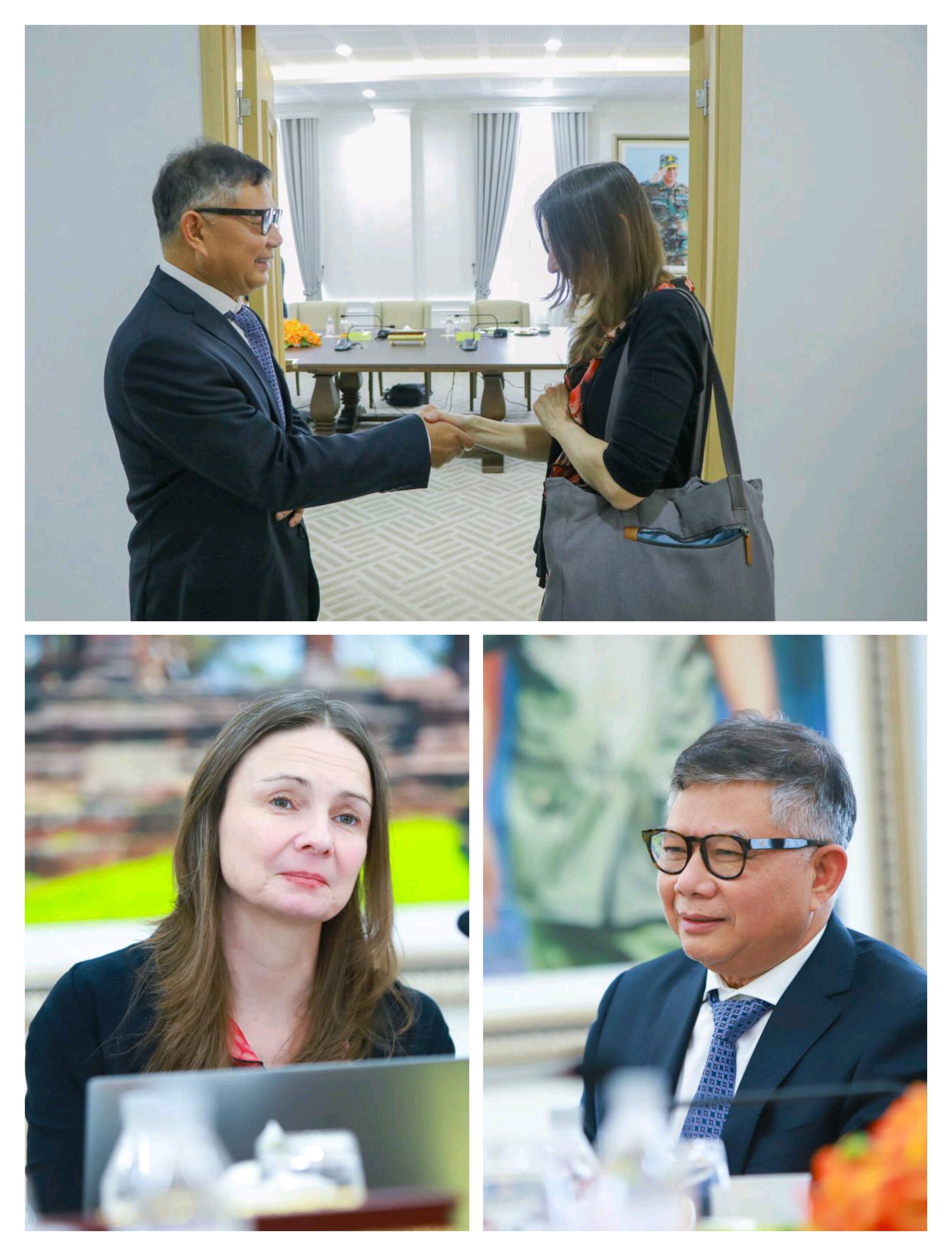 ភ្នំពេញ៖ លោកសន្តិបណ្ឌិត ឆៃ ស៊ីណារិទ្ធ ទេសរដ្ឋមន្ត្រីទទួលបន្ទុកបេសកកម្មពិសេស និងជាប្រធានលេខាធិការដ្ឋានគណៈកម្មការប្រយុទ្ធប្រឆាំងការឆបោកតាមប្រព័ន្ធបច្ចេកវិទ្យា (គ.ប.ឆ.ប.) នារសៀលថ្ងៃទី២១ ខែមករា ឆ្នាំ២០២៦ម្សិលមិញនេះ បានអនុញ្ញាតឱ្យលោកស្រី បណ្ឌិត Rebecca Miller អ្នកសម្របសម្រួលថ្នាក់តំបន់ផ្នែកជួញដូរមនុស្ស និងរត់ពន្ធជនចំណាកស្រុក នៃការិយាល័យ អង្គការសហប្រជាជាតិទទួលបន្ទុកគ្រឿងញៀន និងឧក្រិដ្ឋកម្ម (UNODC) ប្រចាំតំបន់អាស៊ីអាស៊ីអាគ្នេយ៍ និងប៉ាស៊ីហ្វិក ចូលជួបសម្តែងការគួរសម និងពិភាក្សាការងារ។