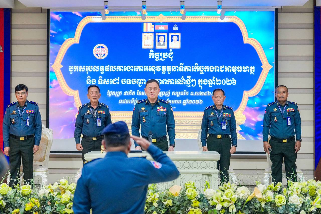 ភ្នំពេញ៖ លោកឧត្តមសេនីយ៍ឯក ស្រ៊ាង មេបញ្ជាការរង កងរាជអាវុធហត្ថលើផ្ទៃប្រទេស ជាមេបញ្ជាការ កងរាជអាវុធហត្ថរាជធានីភ្នំពេញ បានអញ្ជើញជាអធិបតីក្នុងកិច្ចប្រជុំបូកសរុបលទ្ធផលការងារការអនុវត្តតួនាទី ភារកិច្ចកងរាជអាវុធហត្ថរាជធានីភ្នំពេញ និង ទិសដៅការងារបន្ត បទបញ្ជា-សភាពការណ៍ថ្មីៗ ឆ្នាំ២០២៦ នារសៀល ថ្ងៃទី២៣ ខែមករា ឆ្នាំ២០២៦ នៅបញ្ជាការដ្ឋានកងរាជអាវុធហត្ថរាជធានីភ្នំពេញ ដោយមានការចូលរួមពី លោកមេបញ្ជាការរង នាយ-នាយសេនាធិការរង ប្រធានមន្ទីរ នាយ-នាយរងការិយាល័យ លោកមេបញ្ជាការ មូលដ្ឋានអាវុធហត្ថខណ្ឌទាំង១៤ និងលោកមេបញ្ជាការវរសេនាតូច ព្រមទាំង នាយ-នាយរង អាវុធហត្ថពាក់ព័ន្ធជាច្រើនរូបទៀតផងដែរ។