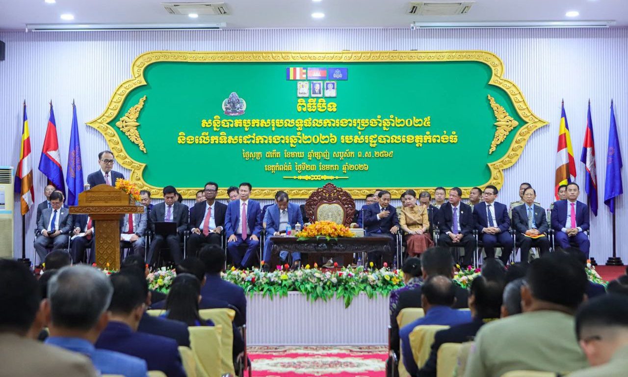 ខេត្តកំពង់ធំ ៖ លោក វង្សី វិស្សុត ឧបនាយករដ្ឋមន្រ្តីប្រចាំការ រដ្ឋមន្រ្តីទទួលបន្ទុកទីស្ដីការគណៈរដ្ឋមន្ត្រី និងជាប្រធានក្រុមការងាររាជរដ្ឋាភិបាលចុះមូលដ្ឋានខេត្តកំពង់ធំ នាព្រឹកថ្ងៃសុក្រ ទី២៣ ខែមករា ឆ្នាំ២០២៦ បានអញ្ជើញជាអធិបតីក្នុងពិធីបិទសន្និបាតបូកសរុបលទ្ធផលការងារប្រចាំឆ្នាំ២០២៥ និងលើកទិសដៅការងារឆ្នាំ២០២៦ របស់រដ្ឋបាលខេត្តកំពង់ធំ ដោយមានការអញ្ជើញចូលរួមពីតំណាងក្រសួង ស្ថាប័នពាក់ព័ន្ធ, ប្រធាន អនុប្រធានក្រុមការងាររាជរដ្ឋាភិបាលចុះមូលដ្ឋាន ក្រុង ស្រុក, ក្រុមប្រឹក្សានិងគណៈអភិបាលខេត្ត ក្រុង ស្រុក, ក្រុមប្រឹក្សាឃុំ សង្កាត់, ថ្នាក់ដឹកនាំ មន្ត្រីរាជការនៃរដ្ឋបាលខេត្តកំពង់ធំជាច្រើនរូប។