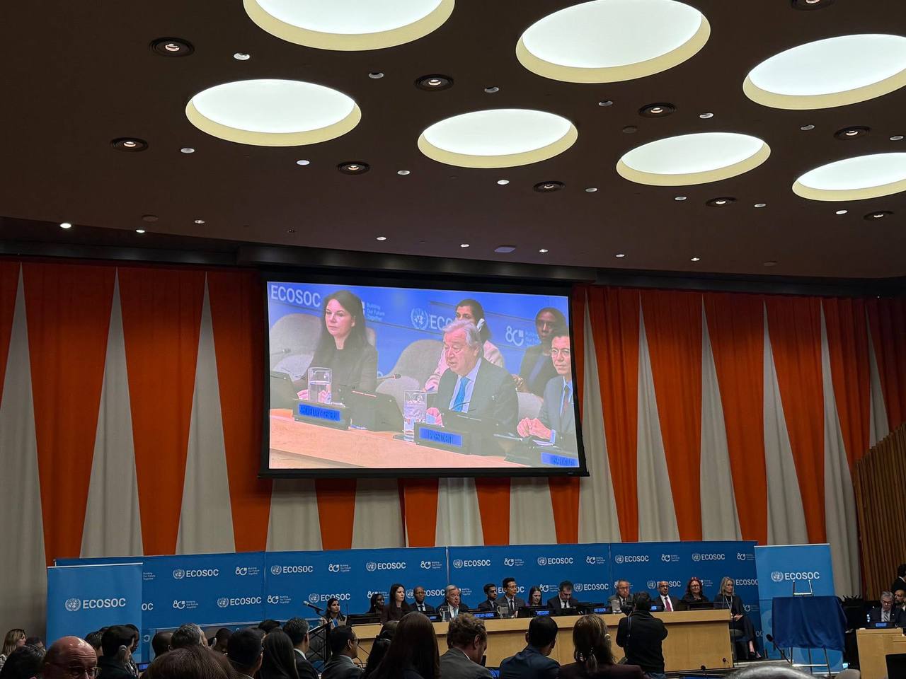 The meeting was presided over by His Excellency Lok Bahadur Thapa, President of ECOSOC, Her Excellency Annalena Baerbock, President of the 80th Session of the United Nations General Assembly, and His Excellency António Guterres, Secretary-General of the United Nations, with the participation of more than 150 member states.