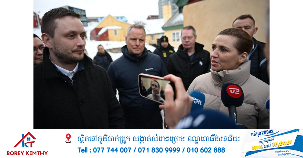 សារព័ត៌មាន Reuters នាថ្ងៃសៅរ៍ ទី២៤ ខែមករា ឆ្នាំ ២០២៦ បានផ្សាយថានាយករដ្ឋមន្ត្រីដាណឺម៉ាក លោកស្រី Mette Frederiksen បានទៅបំពេញទស្សនកិច្ចនៅ Greenland កាលពីថ្ងៃសុក្រសប្តាហ៍នេះ ដេីម្បីបង្ហាញការគាំទ្រចំពោះកោះក្នុងតំបន់អាកទិកមួយនេះ ខណៈដែលលោកប្រធានាធិបតី ដូណាល់ ត្រាំ ថាអាមេរិកមានបំណងចង់គ្រប់គ្រប់។