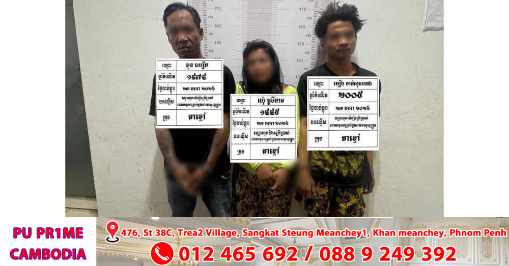 ទី១-ឈ្មោះ មឿង ចាន់សុខហេង ភេទប្រុស អាយុ២០ឆ្នាំ សញ្ជាតិខ្មែរ រស់នៅភូមិកំពង់សំណាញ់ សង្កាត់កំពង់សំណាញ់ ក្រុងតាខ្មៅខេត្តកណ្តាល ជនសង្ស័យធ្លាប់ជាប់ពន្ធនាគារខេត្តកណ្តាលចំនួន០១លើក ជាប់រយៈពេល០១ឆ្នាំពីបទប៉ុនប៉ងលួច, ២-ឈ្មោះ ខុន ឃឿន ភេទប្រុស អាយុ៤៧ឆ្នាំ សញ្ជាតិខ្មែរ រស់នៅភូមិតាខ្មៅ សង្កាត់តាខ្មៅ ក្រុងតាខ្មៅ ជនសង្ស័យធ្លាប់ជាប់ពន្ធនាគារខេត្តកណ្តាលចំនួន០២លើក លើកទី១ ជាប់រយៈពេល០១ឆ្នាំពីបទអំពើលួចទូរស័ព្ទ, លើកទី២ជាប់រយៈពេល០៨ខែ ពីបទអំពើលួចនិង៣-ឈ្មោះ ឈុំ ស្រីនាថ ភេទស្រី អាយុ៣១ឆ្នាំ ជនជាតិខ្មែរ សញ្ជាតិខ្មែរ រស់នៅភូមិលេខ២ សង្កាត់ស្វាយរលំ ក្រុងតាខ្មៅ ខេត្តកណ្តាល ជនសង្ស័យទាំង៣នាក់មានមុខរបរមិនពិតប្រាកដ និងមានវិជ្ជមានសារធាតុញៀន (+) ។